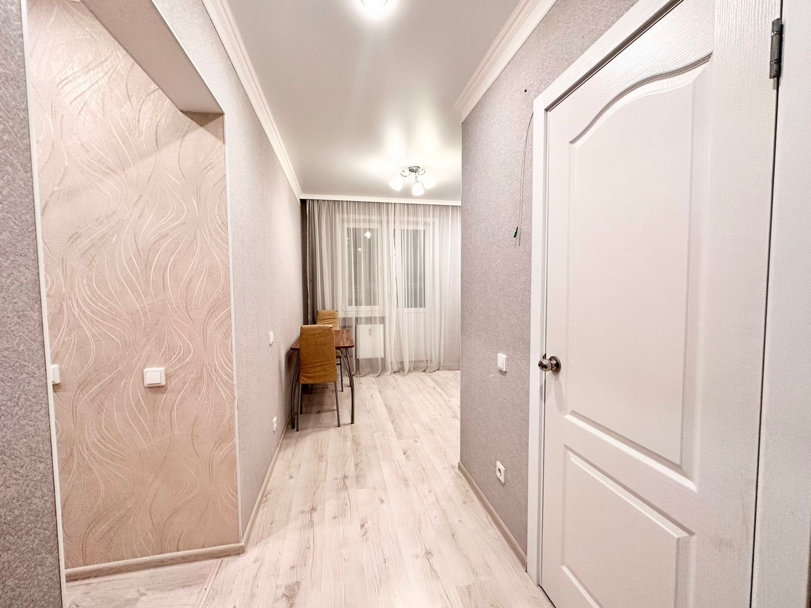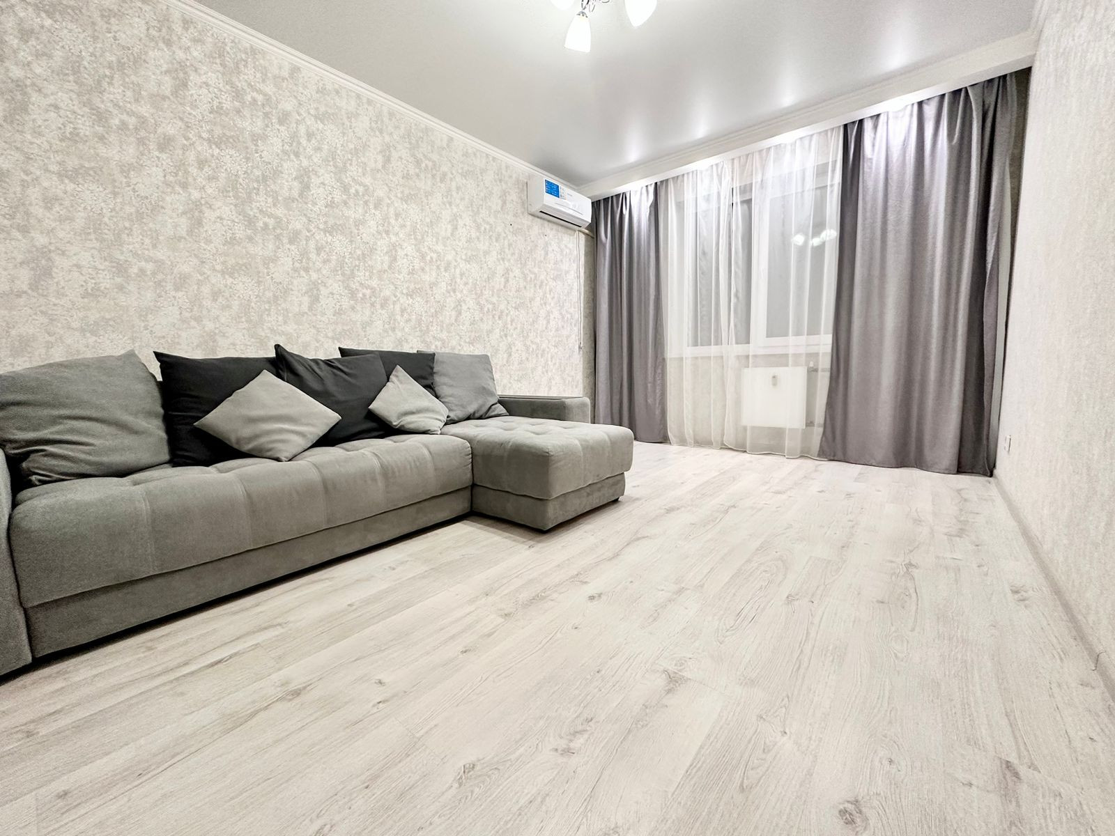 Продаётся 2-комнатная квартира на 10-ом этаже в жилом комплексе "Акварель". Стены в квартире выровнены , обои из флизелиновых материалов, пол покрыт высококачественным прочным ламинатом, потолки — натяжные с точечным освещением. Санузел также выложен плиткой.