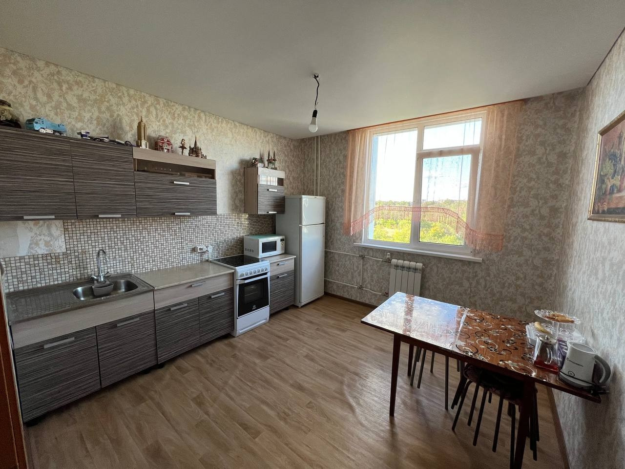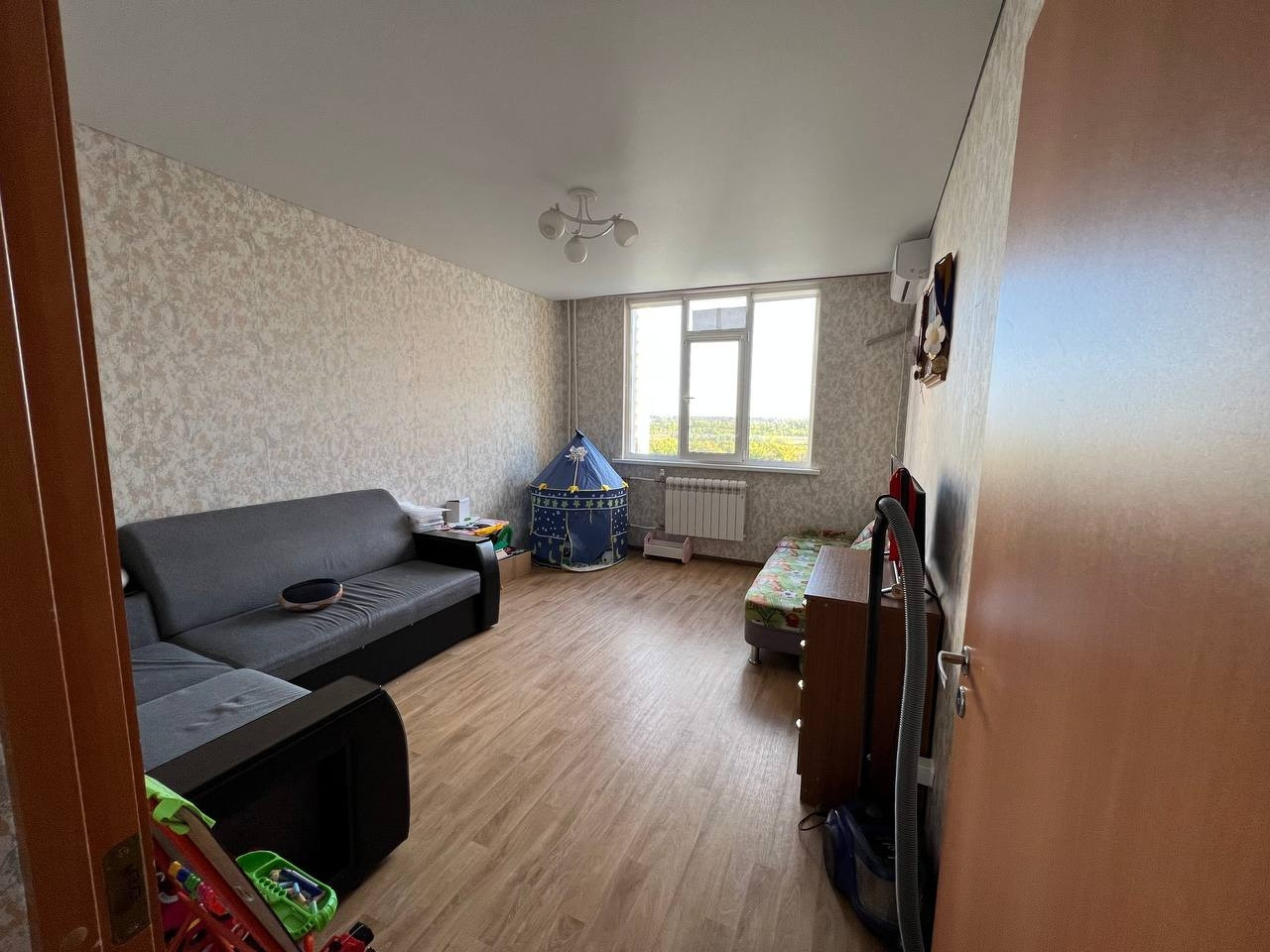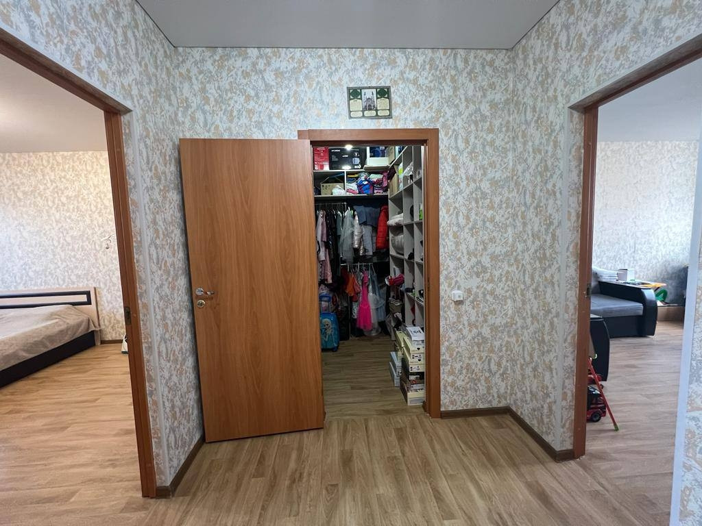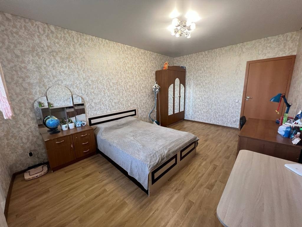 Продается евротрешка, с удобной планировкой. Большие комнаты и кухня, есть гардеробная. В квартире выполнен ремонт от застройщика. Санузел совмещенный, в кафеле. Во всех комнатах натяжные потолки.