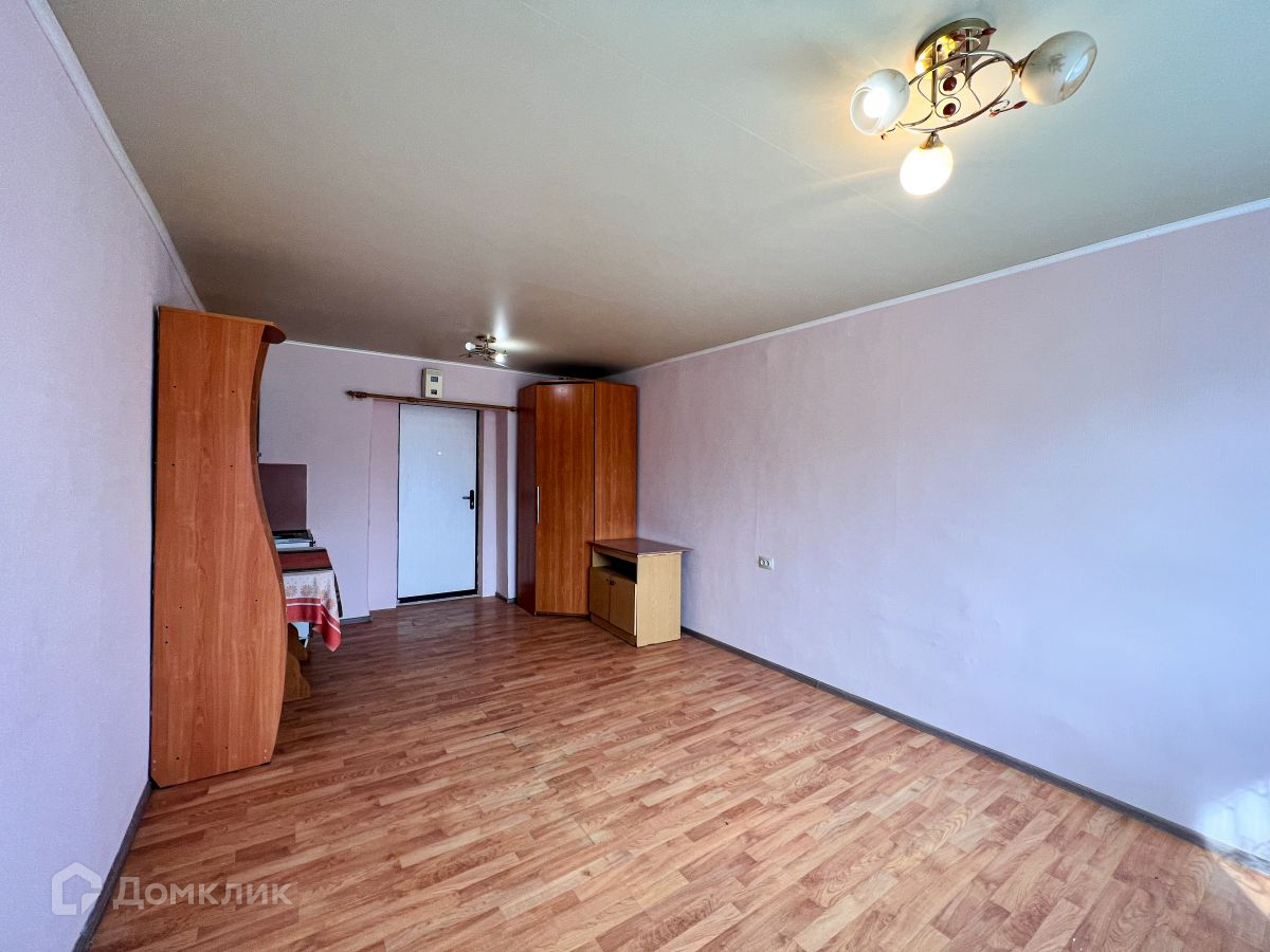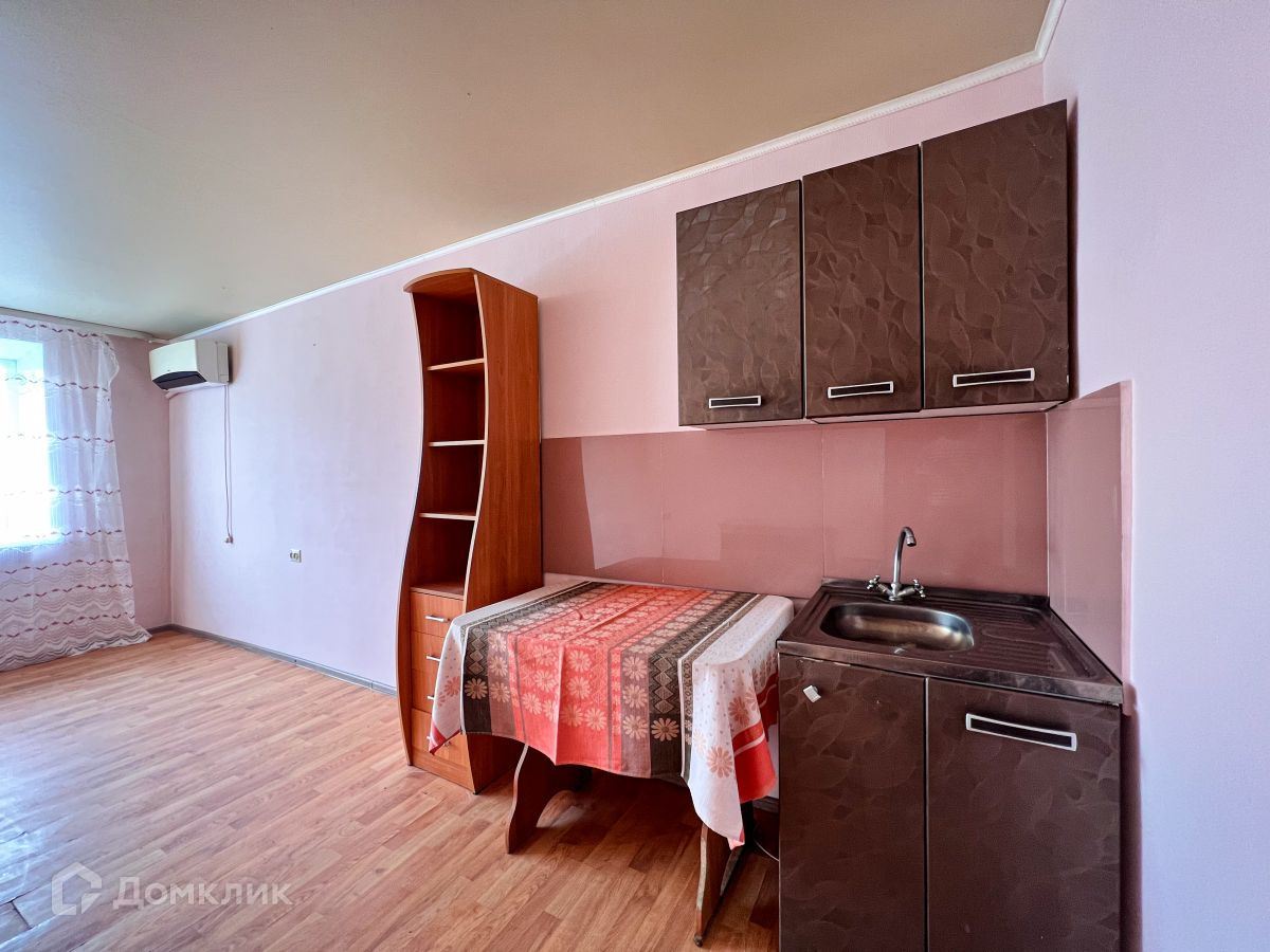 В комнате установлен шкаф, который поможет решить вопрос хранения вещей! Также остается мойка, сплит-система, стол обеденный, шкаф и тумба.