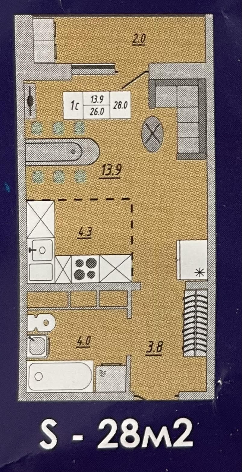 Общая площадь 28.2 м2