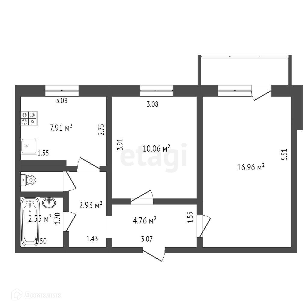 Общая площадь 52.2 м2