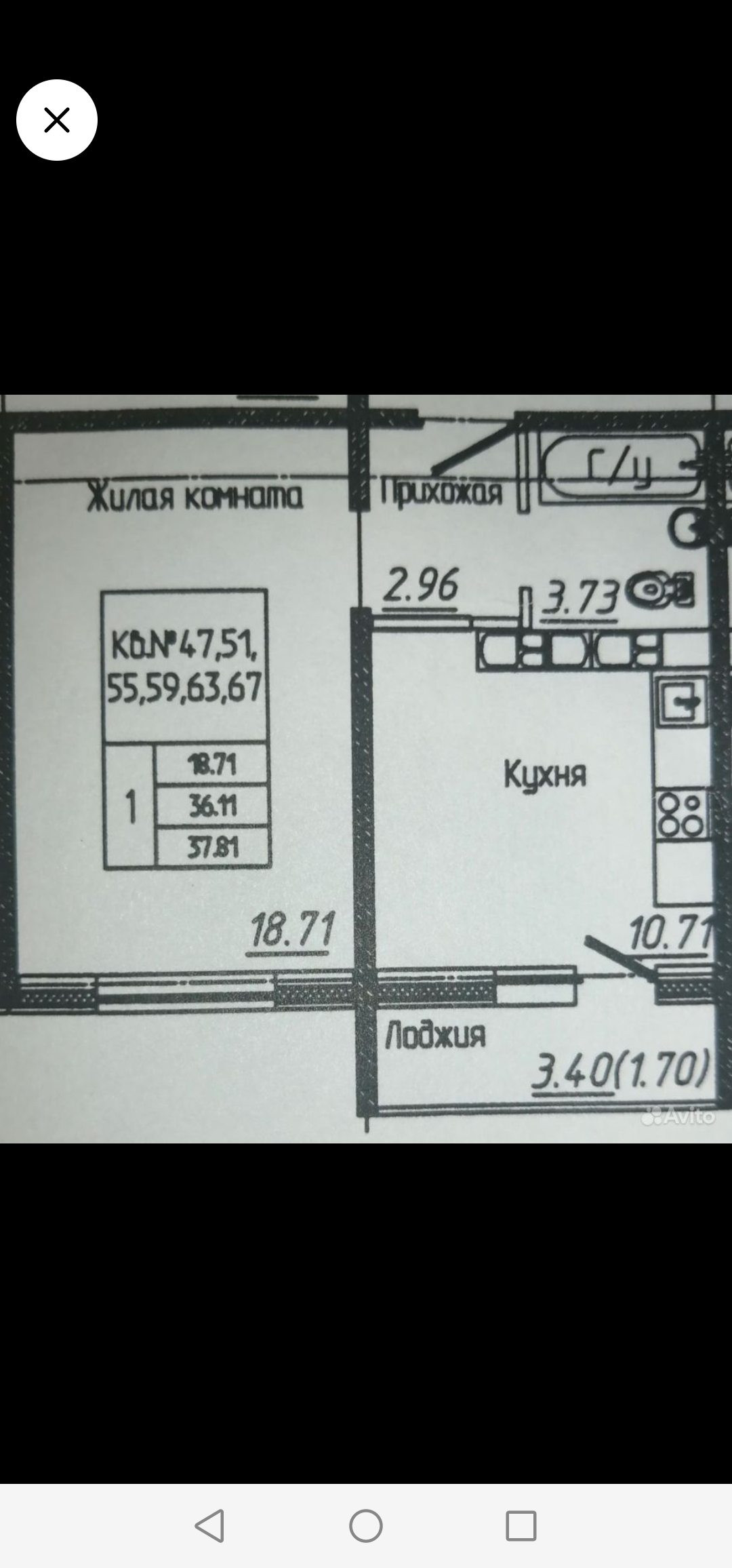 Общая площадь 37.7 м2