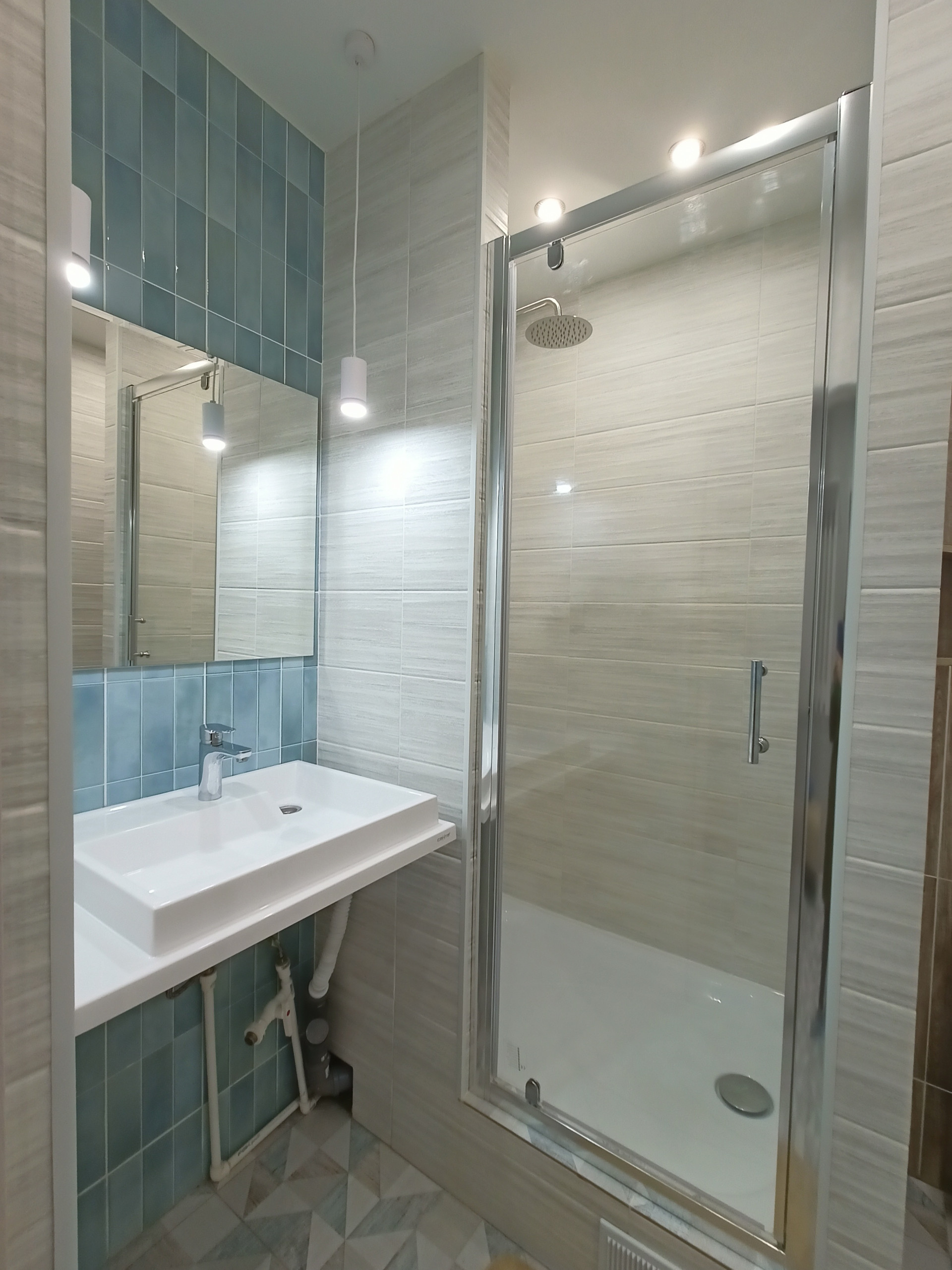 В квартире выполнен качественный ремонт, в кухонной зоне и коридоре на полу плитка, в зале на полу качественный ламинат, санузел совмещенный - выложен кафелем, установлена хорошая сантехника, везде натяжной потолок, стены выровнены, наклеены качественные обои.