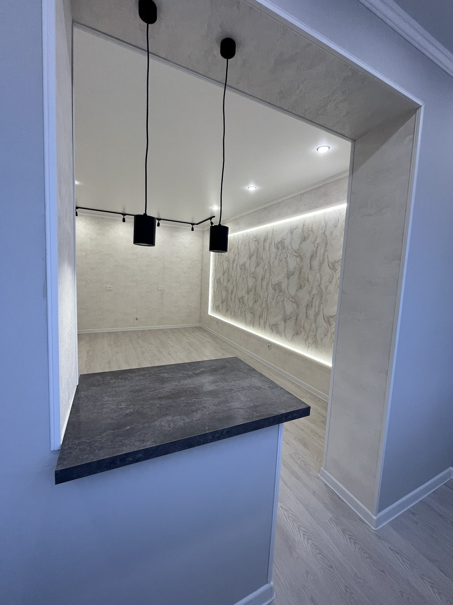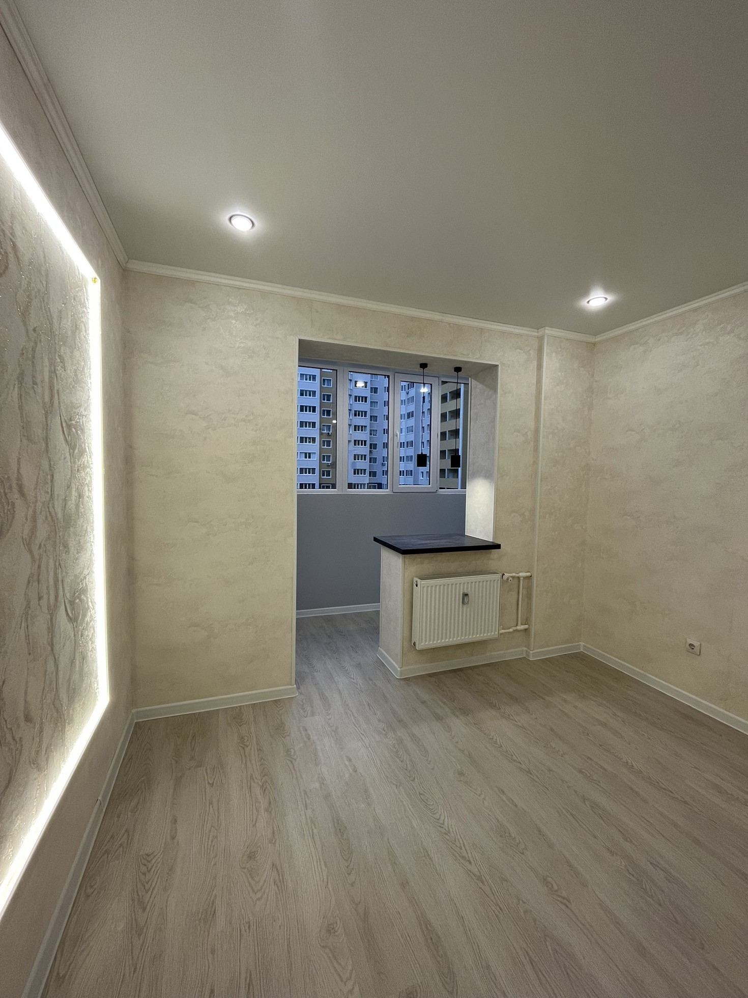 Kухня-Гoстинaя 18 м.кв + объединённaя лoджия 3 м.кв