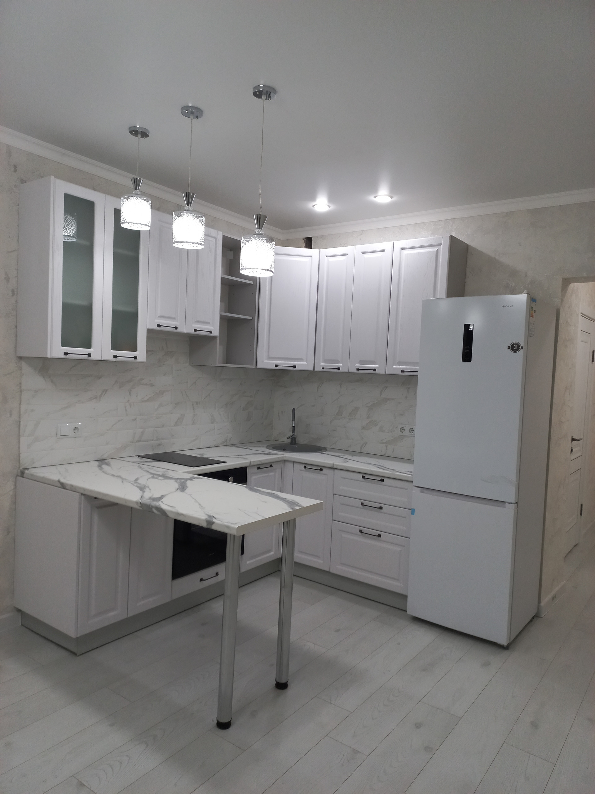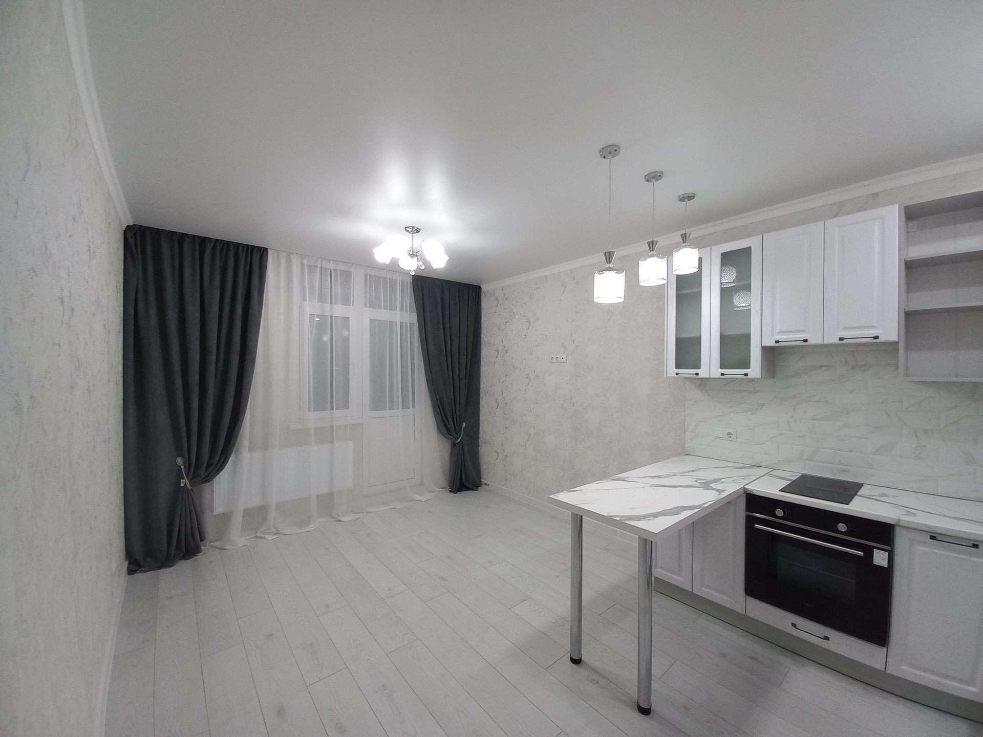 При продаже остается новый кухонный гарнитур с бытовой техникой.