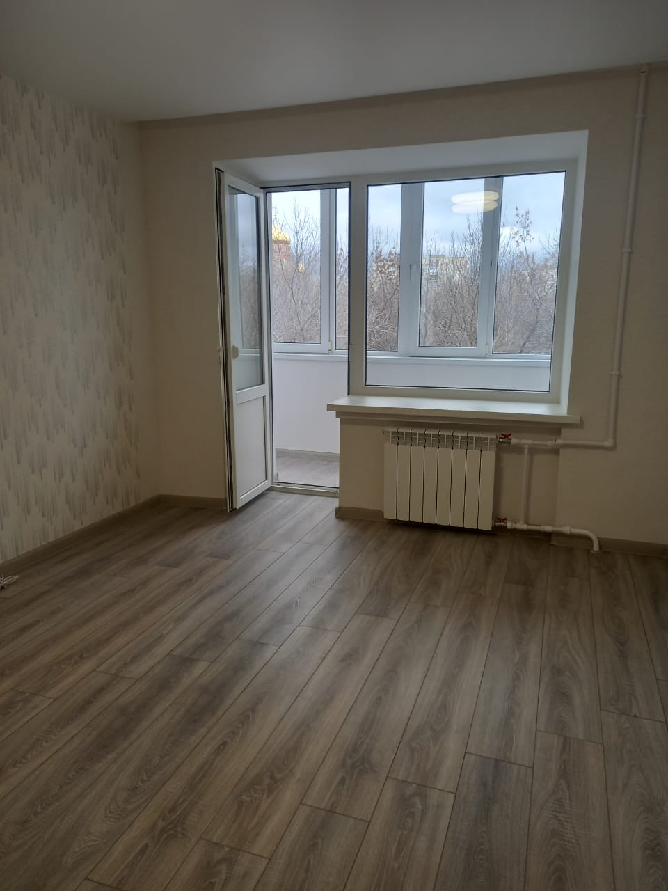 - Ламинат 33класса, на выровненные стены наклеены красивые качественные обой.