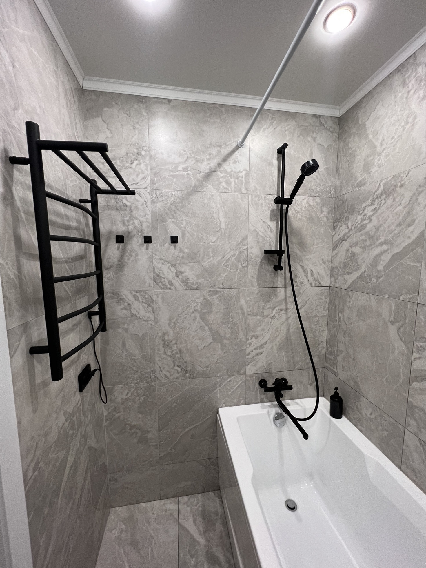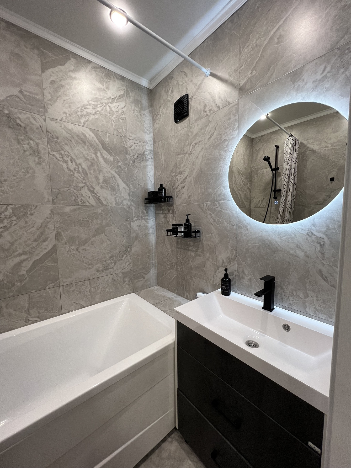 В ванной комнате : установлена ванная (80 на 180 см ) , раковина , электрический полотенцесушитель , зеркало с подсветкой