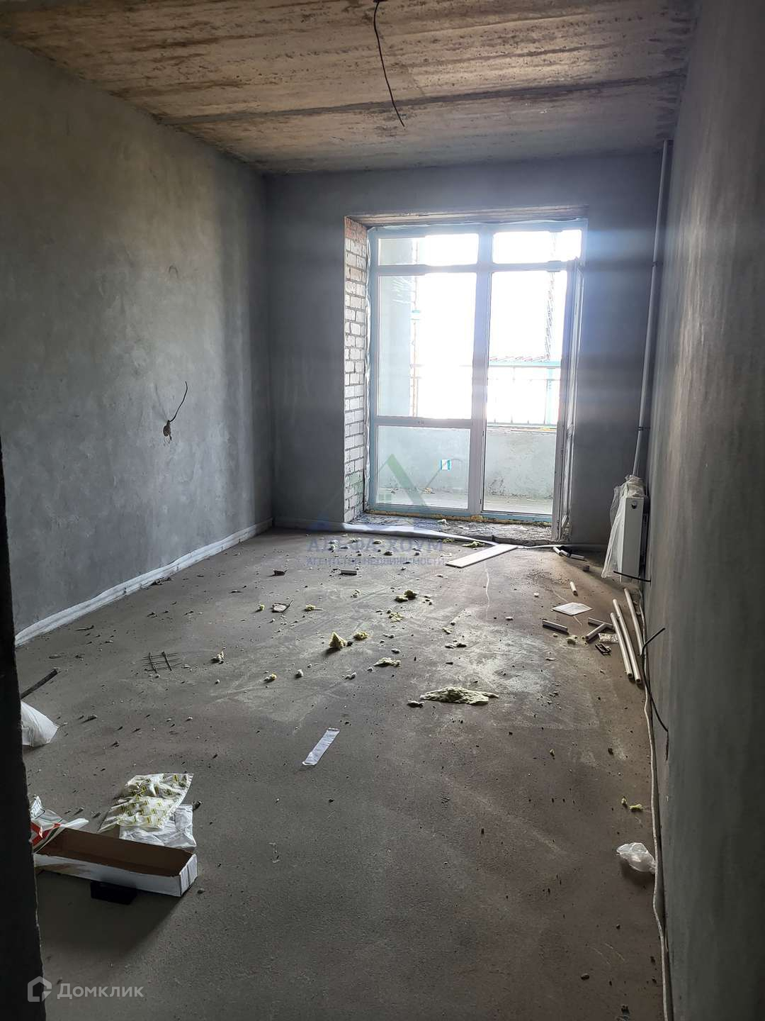 В квартире сделана полусухая стяжка, стены отштукатурены, установлены пластиковые окна, счетчики на электроэнергию и воду.