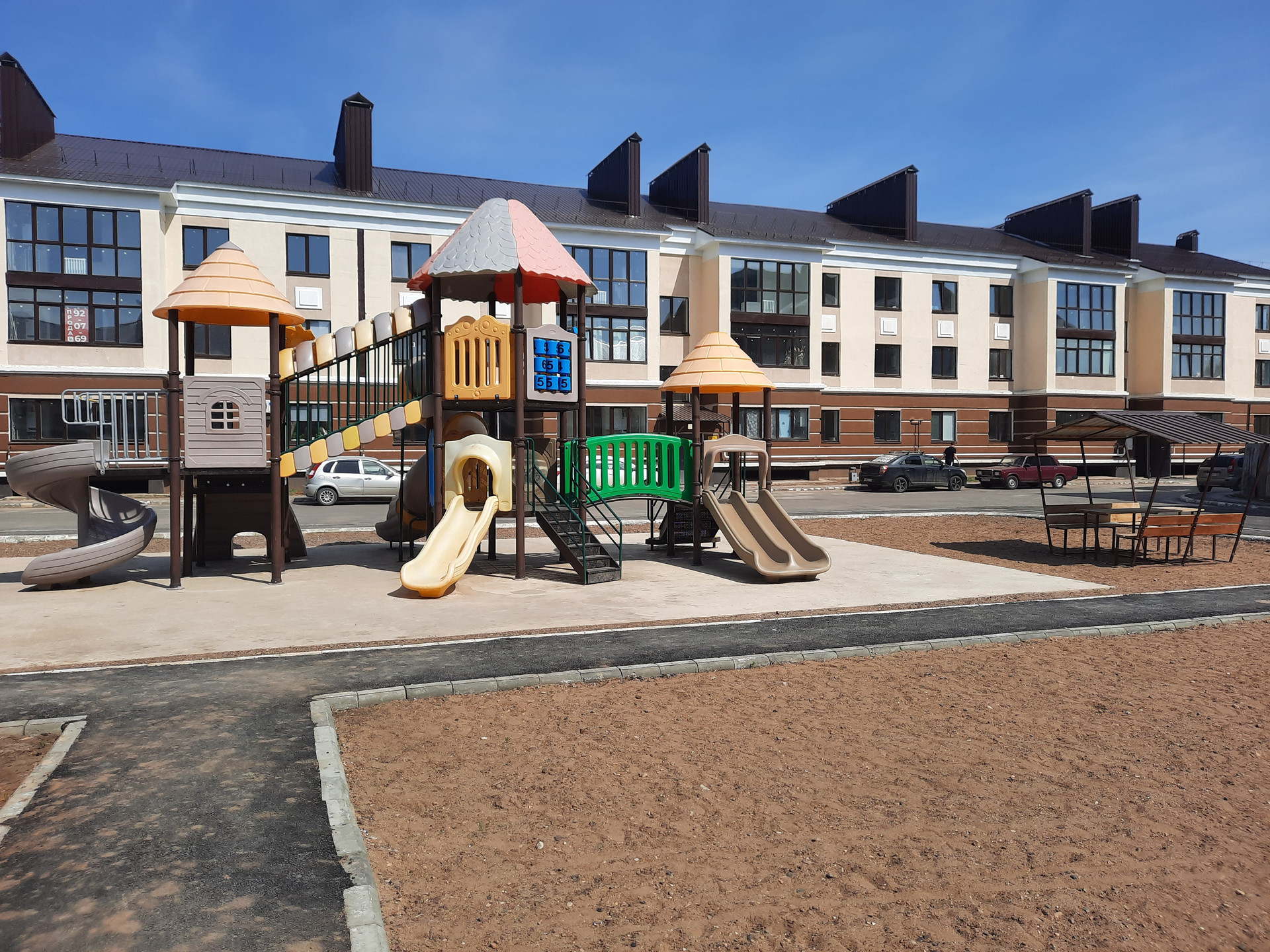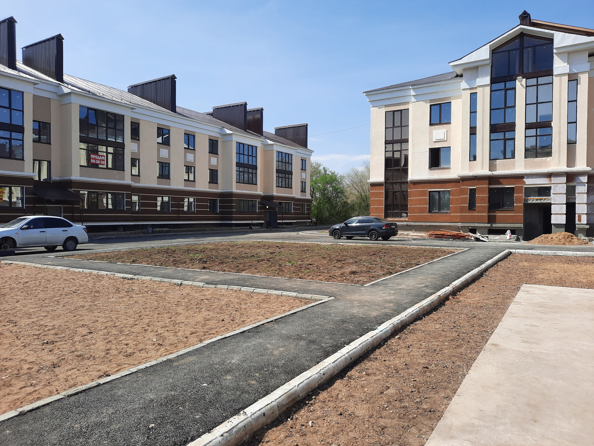 - асфальтированный проезд с выделенными местами для парковок автомобилей, площадка детских и спортивных игр, зоны общего отдыха.
