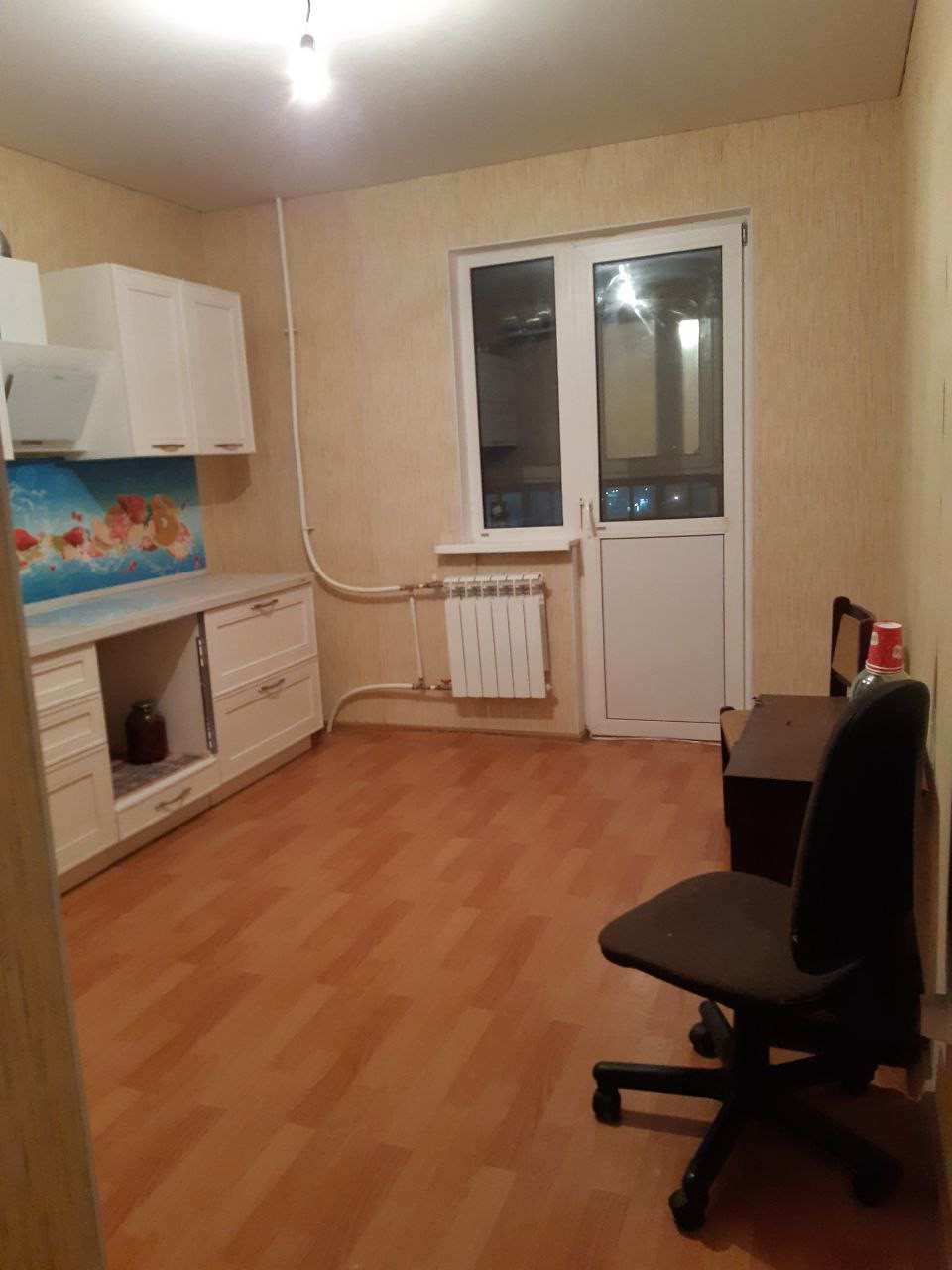 Kуxня пpоcтoрная и cветлая с выход на лоджию. Санузел совмещен.