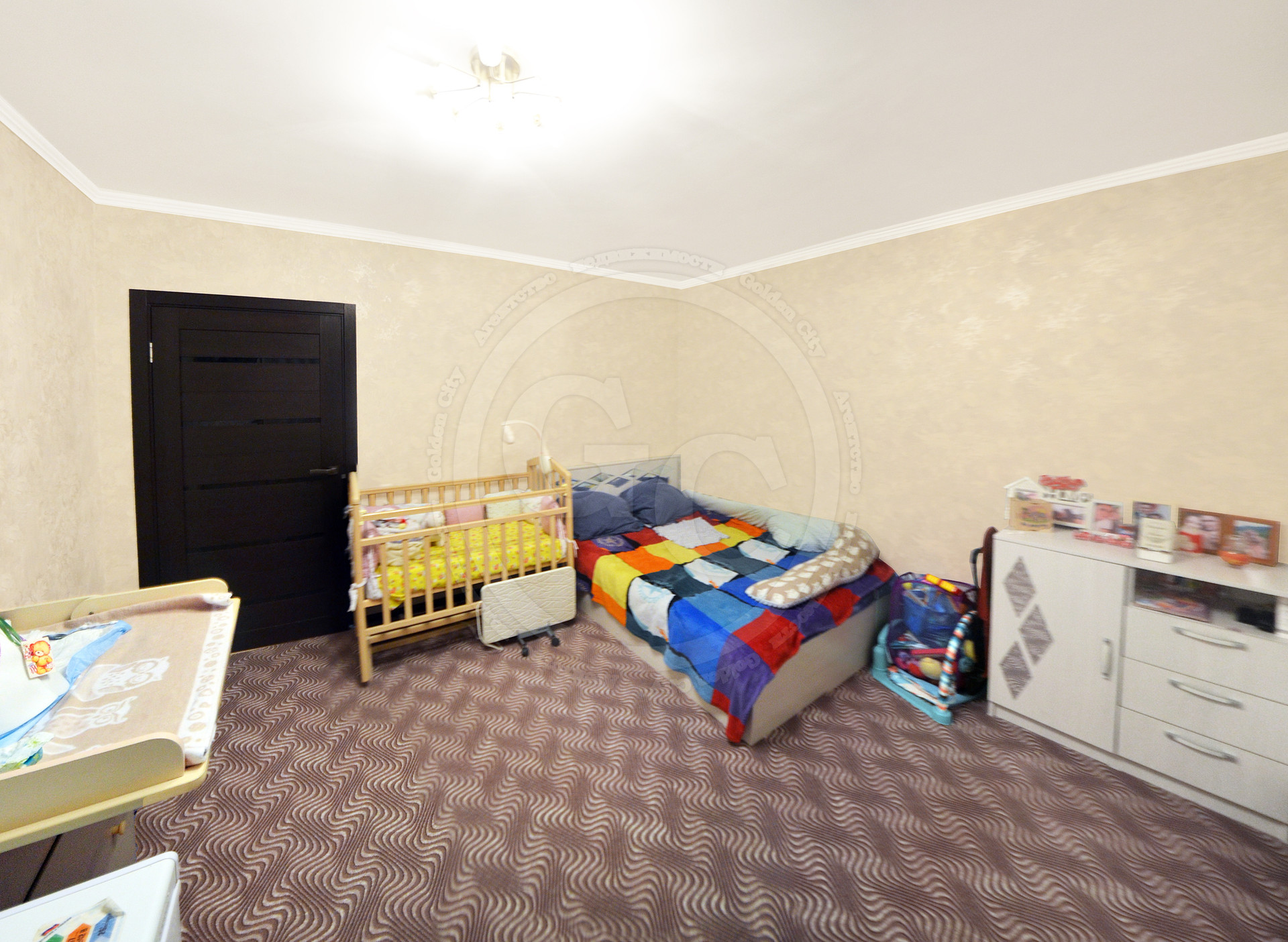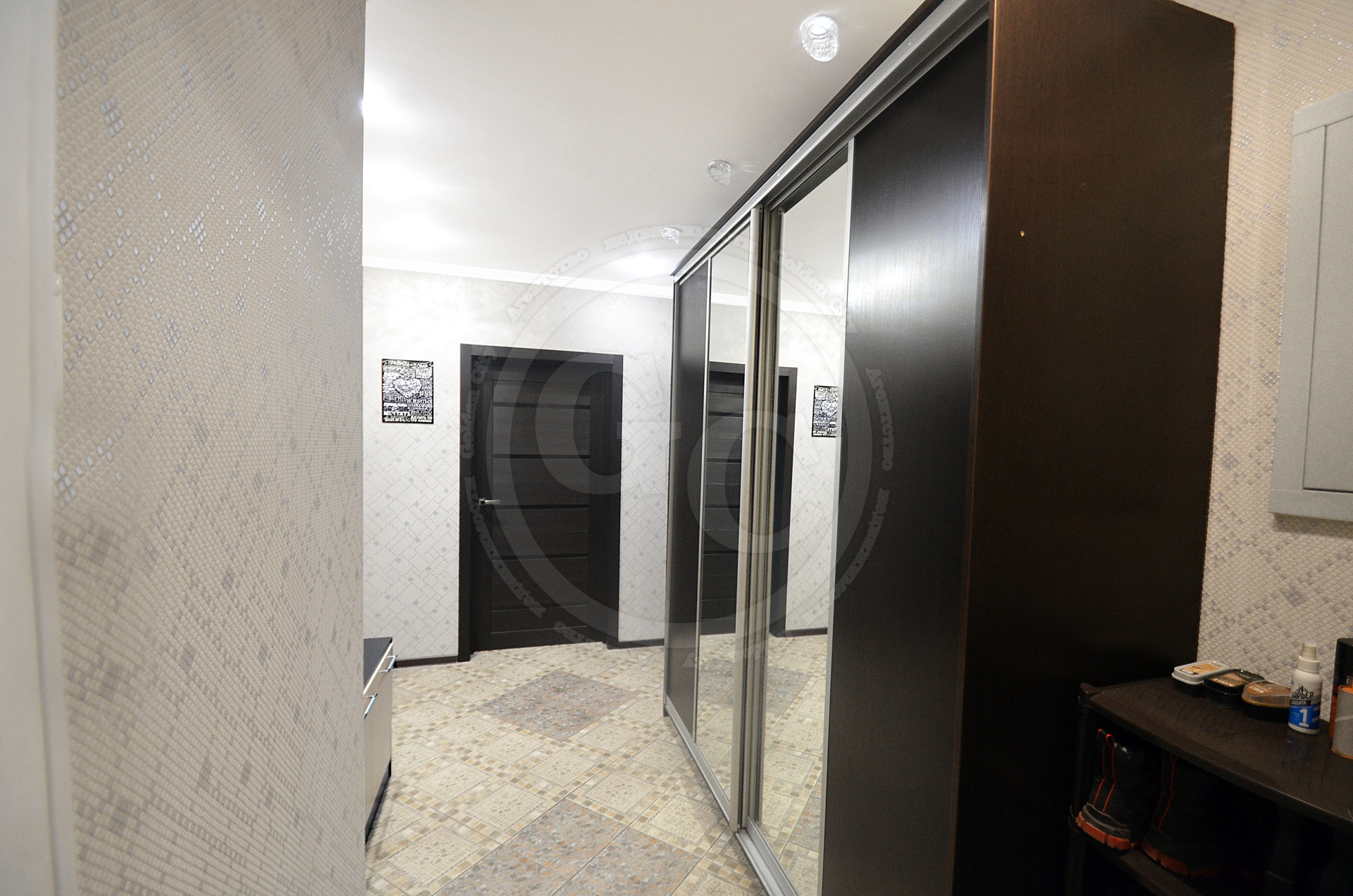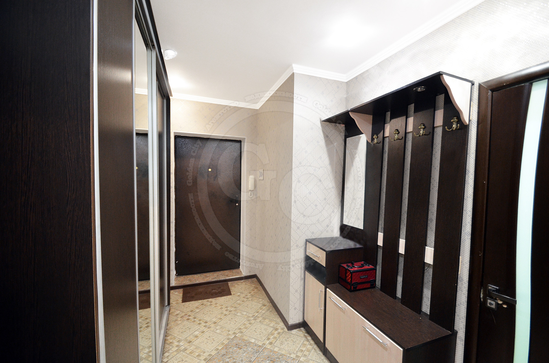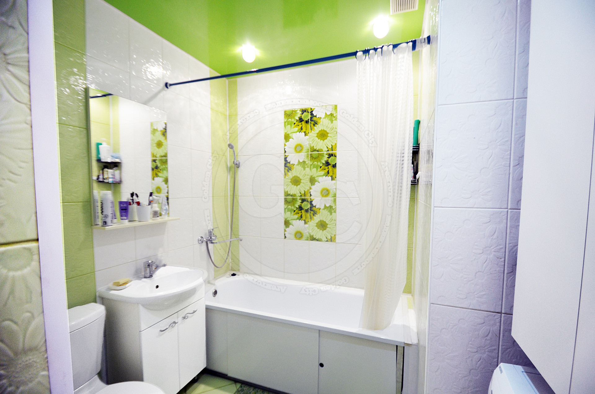 На кухне, в прихожей и в ванной комнате белый выровненный потолок с центральным и точечным освещением, что придает комнатам равномерный свет. Стены в комнате, коридоре и на кухне оклеены качественными обоями. В жилой комнате на пол постелили новый ковролин с термоизоляционным слоем. Вся прихожая и зона рабочей площади на кухне в плитке. В ванной комнате стены и пол отделаны плиткой в приятной цветовой гамме.