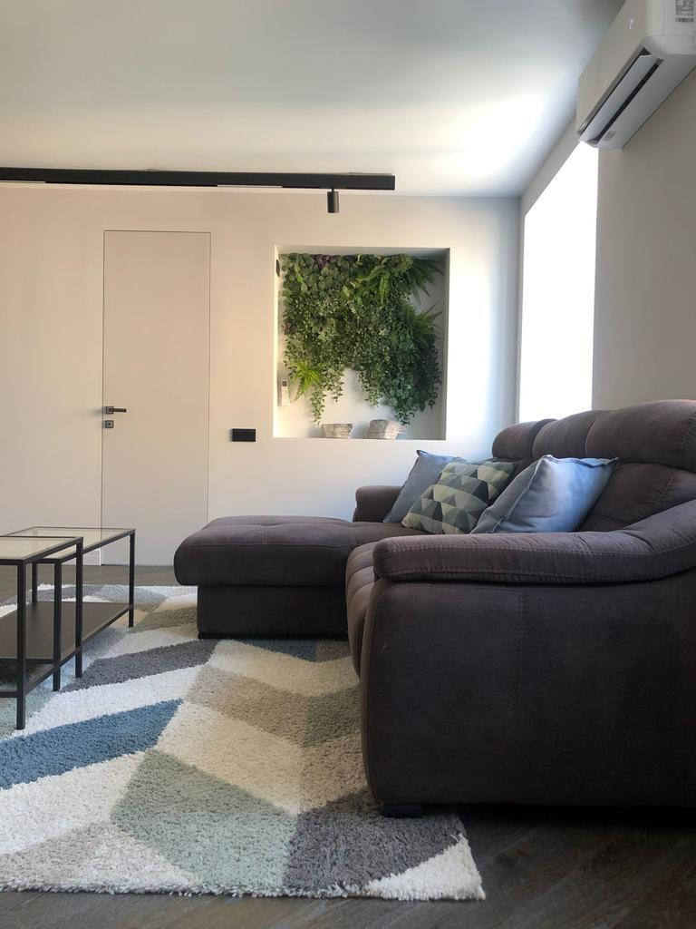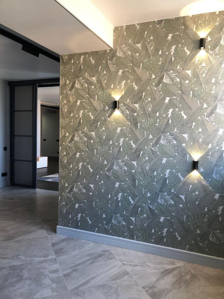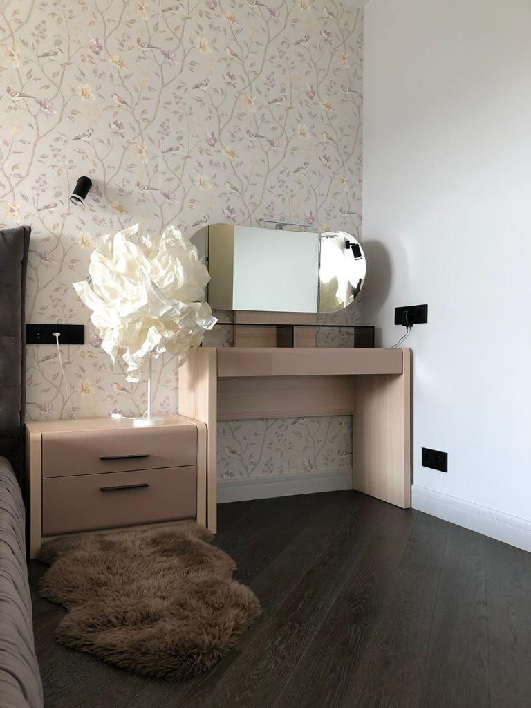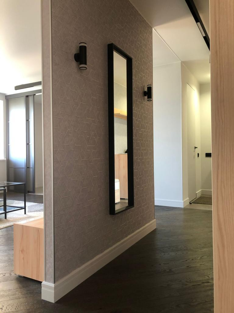 Все материалы отделки выбраны из высокого сегмента: на полу паркетная доска, стены в моющейся покраске спокойного оттенка и обоях, керамогранит ITALON на полу и стенах в СУ, ванной и на кухне.