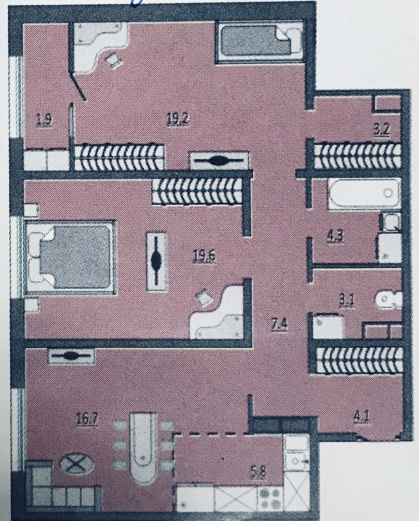 Жилая площадь 55.5 м2