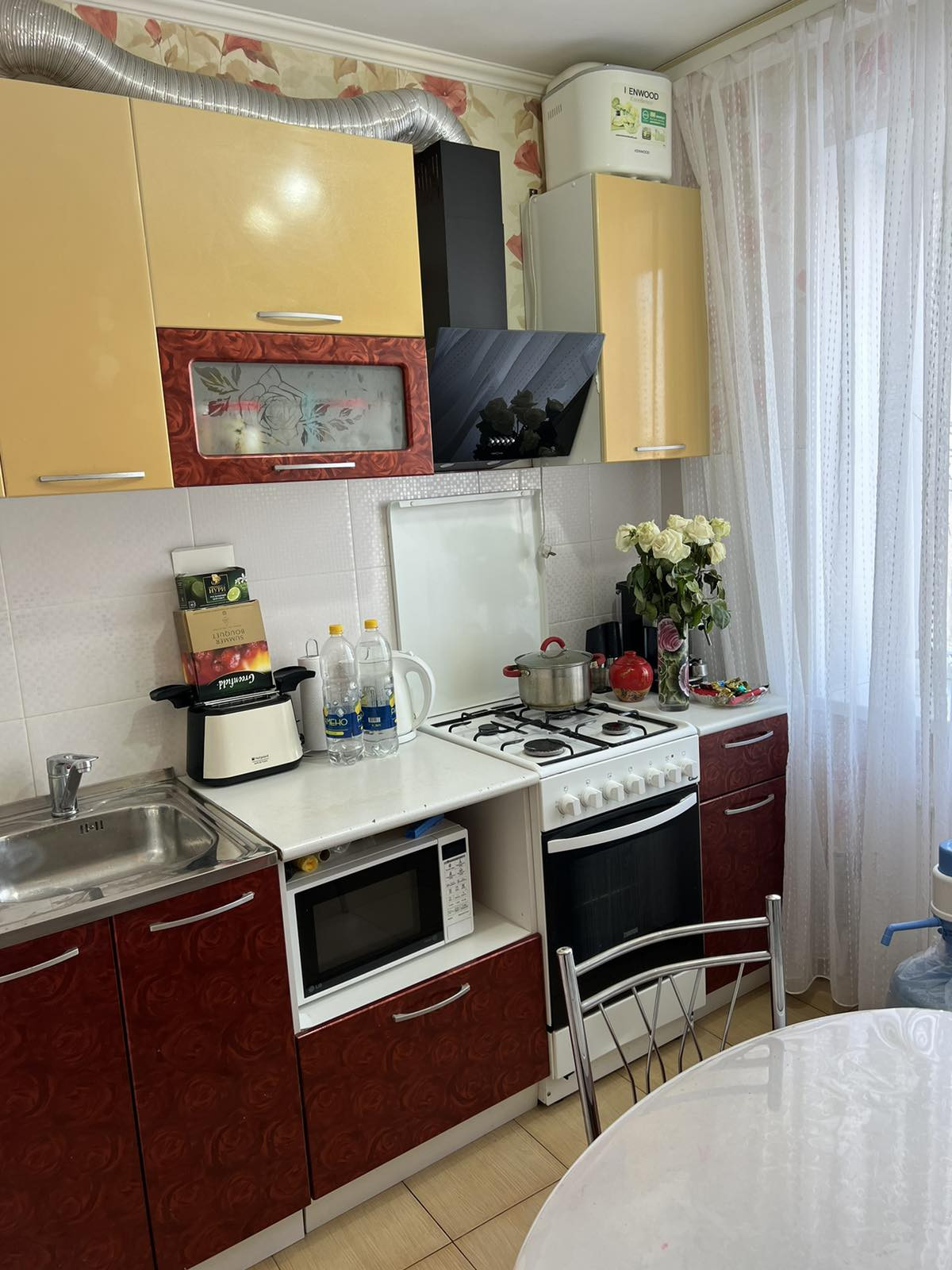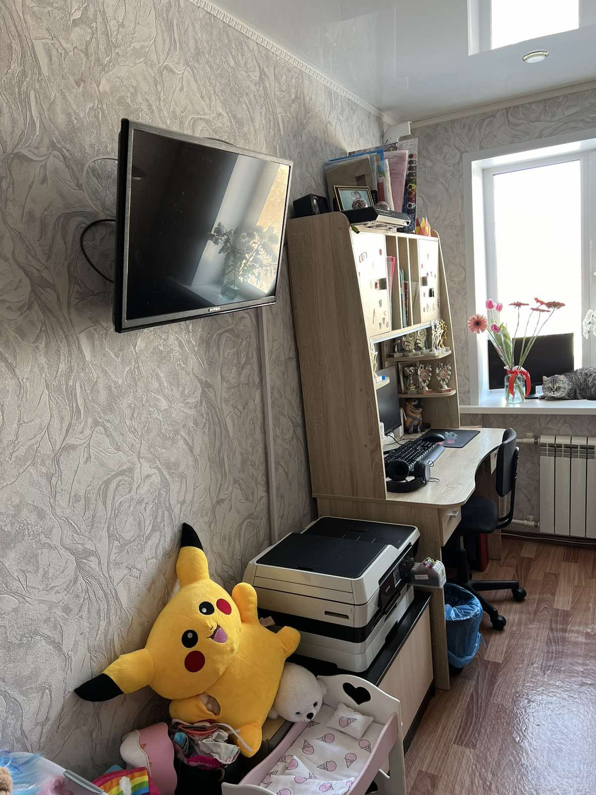 В квартире остается: два кондиционеры (в зале, кухне, обслужен весной 2023 года), стиральная машинка, два встроенных шкафа в прихожей, кухонный гарнитур, газовая плита, вытяжка, холодильник, раскладной стол ,4 стула, компьютерный стол в спальне, домофон умный дом.