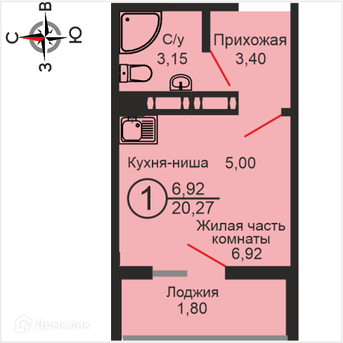 Общая площадь 21 м2