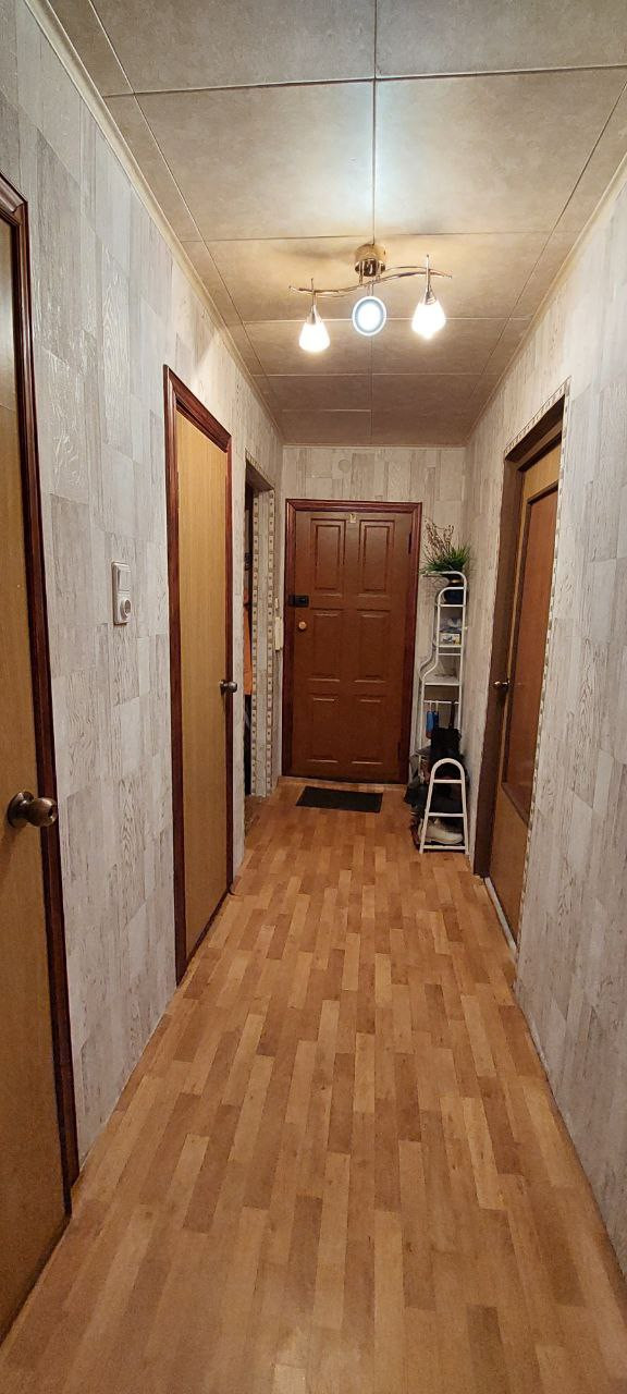 Из просторного коридора выходят: на лево-кухня (пластиковой водопровод ,новые счетчики ),на право – гардеробная ,раздельный санузел, по центру – зал и маленькая спальня. Квартира светлая и очень теплая.
