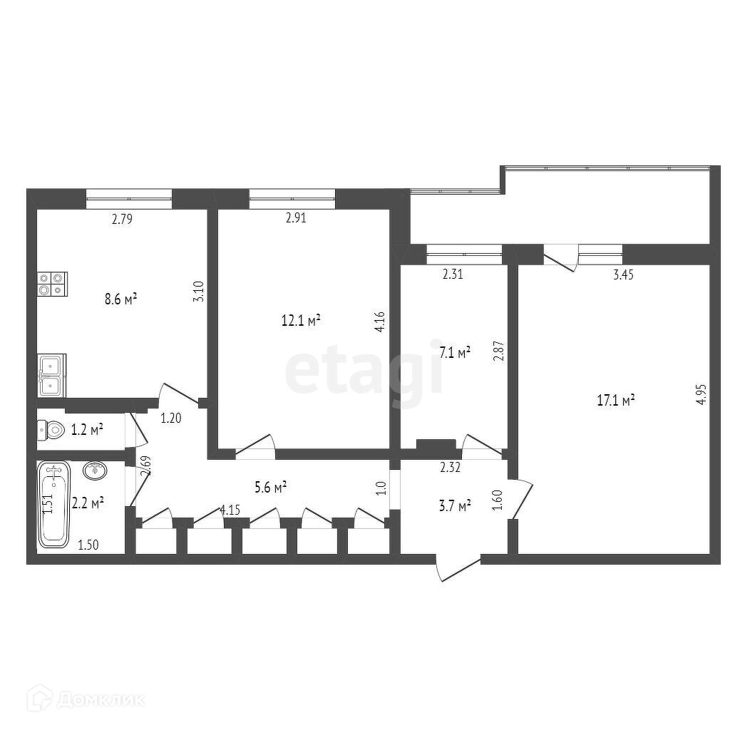 Общaя плoщадь квapтиры: 77 м2.