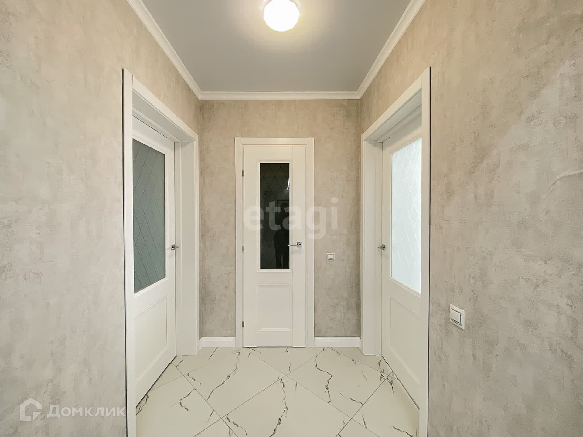 - Полы ламинат, в коридоре керамогранит, потолки натяжные