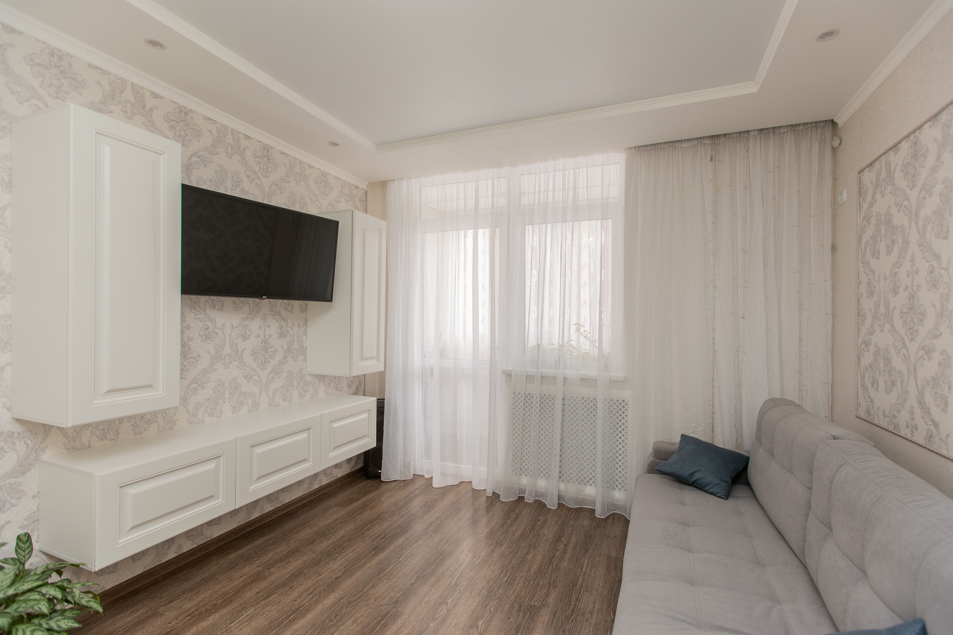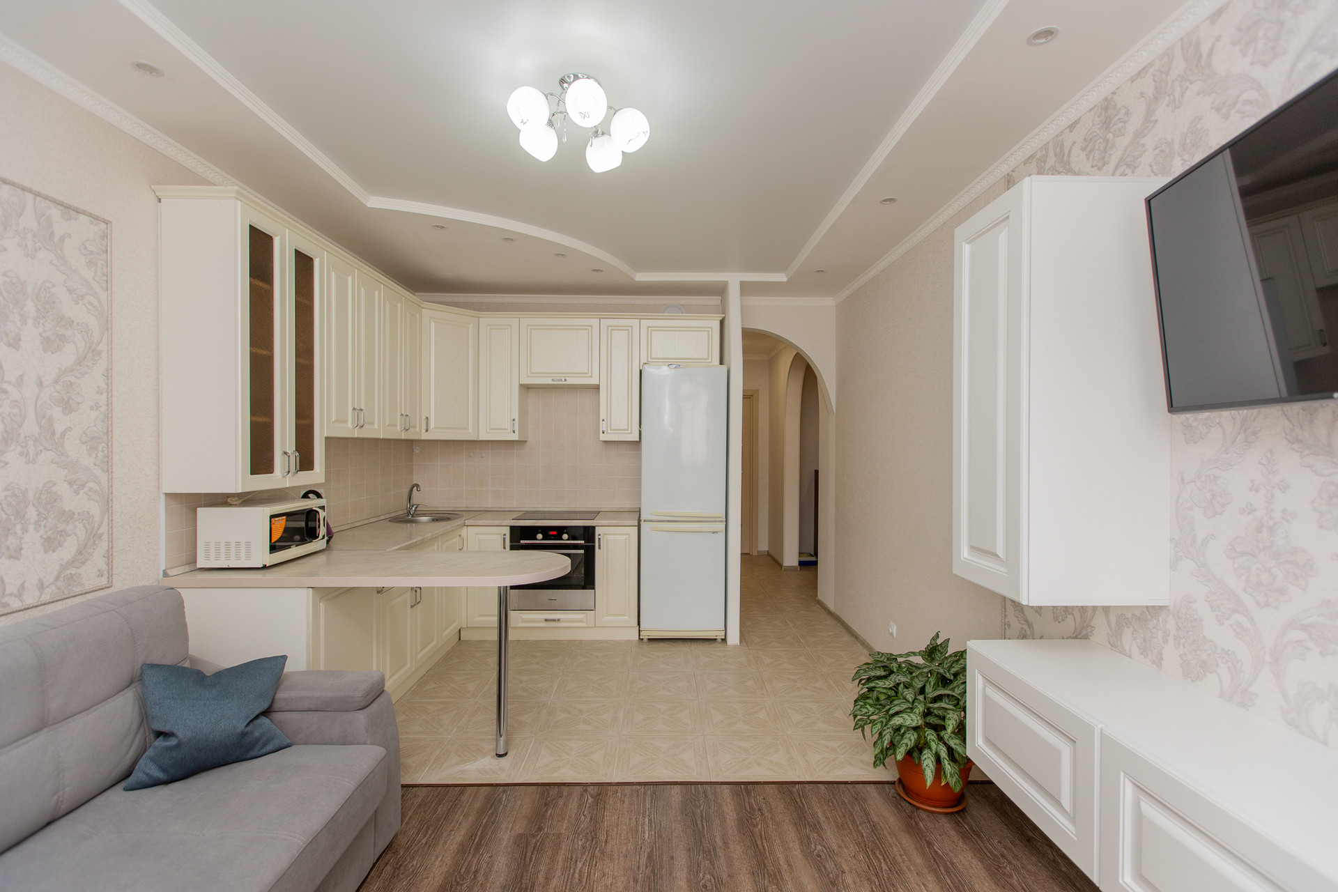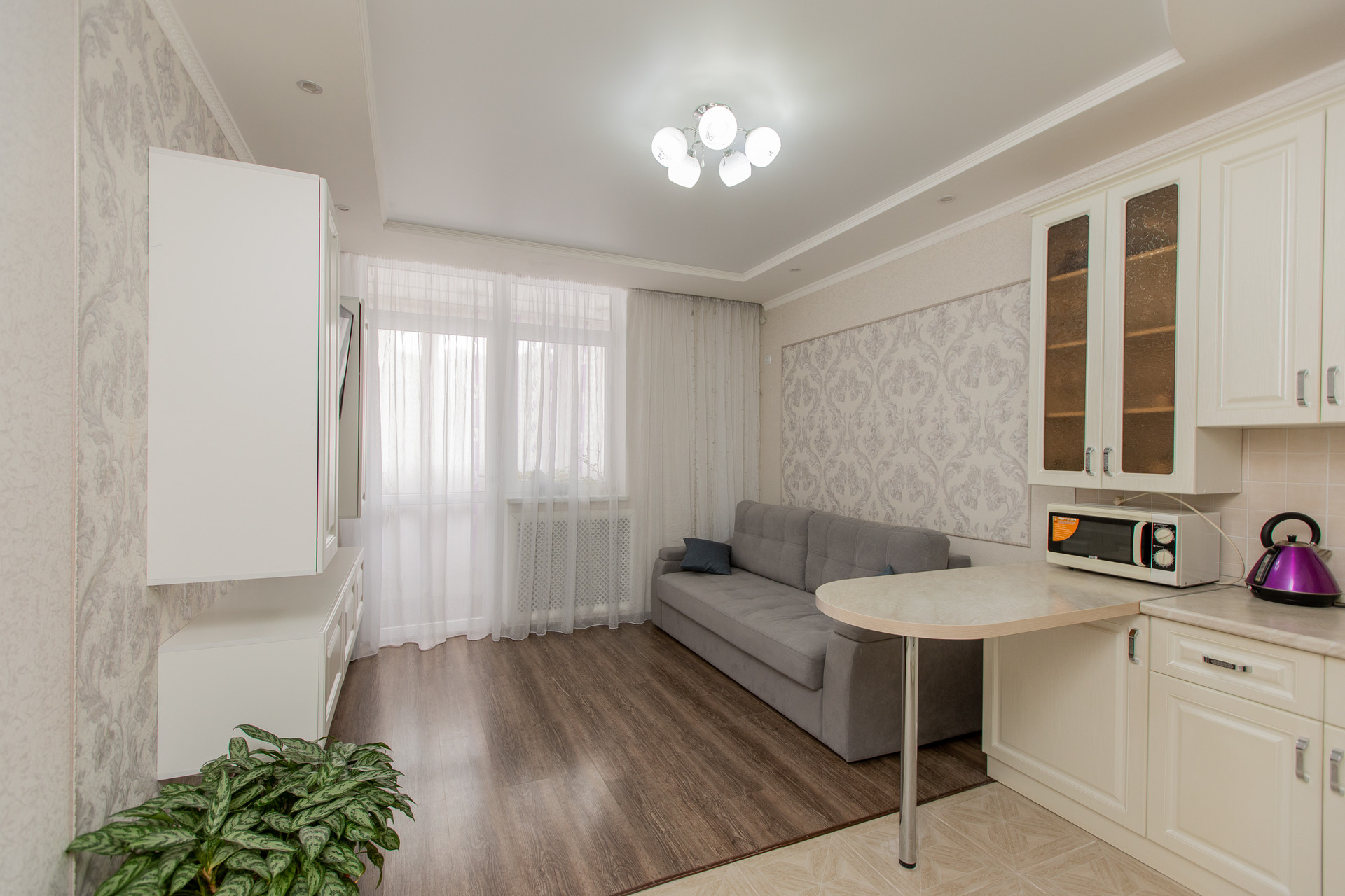 + Большая кухня-гостиная (18 кв. метров) – это комбинированное пространство, объединяющее функции кухни и гостиной в одном помещении. Здесь можно готовить еду, обедать, отдыхать и принимать гостей. Функциональный и качественный кухонный гарнитур остается новым собственникам.