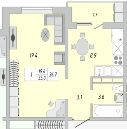 S - 36,7 кв.м