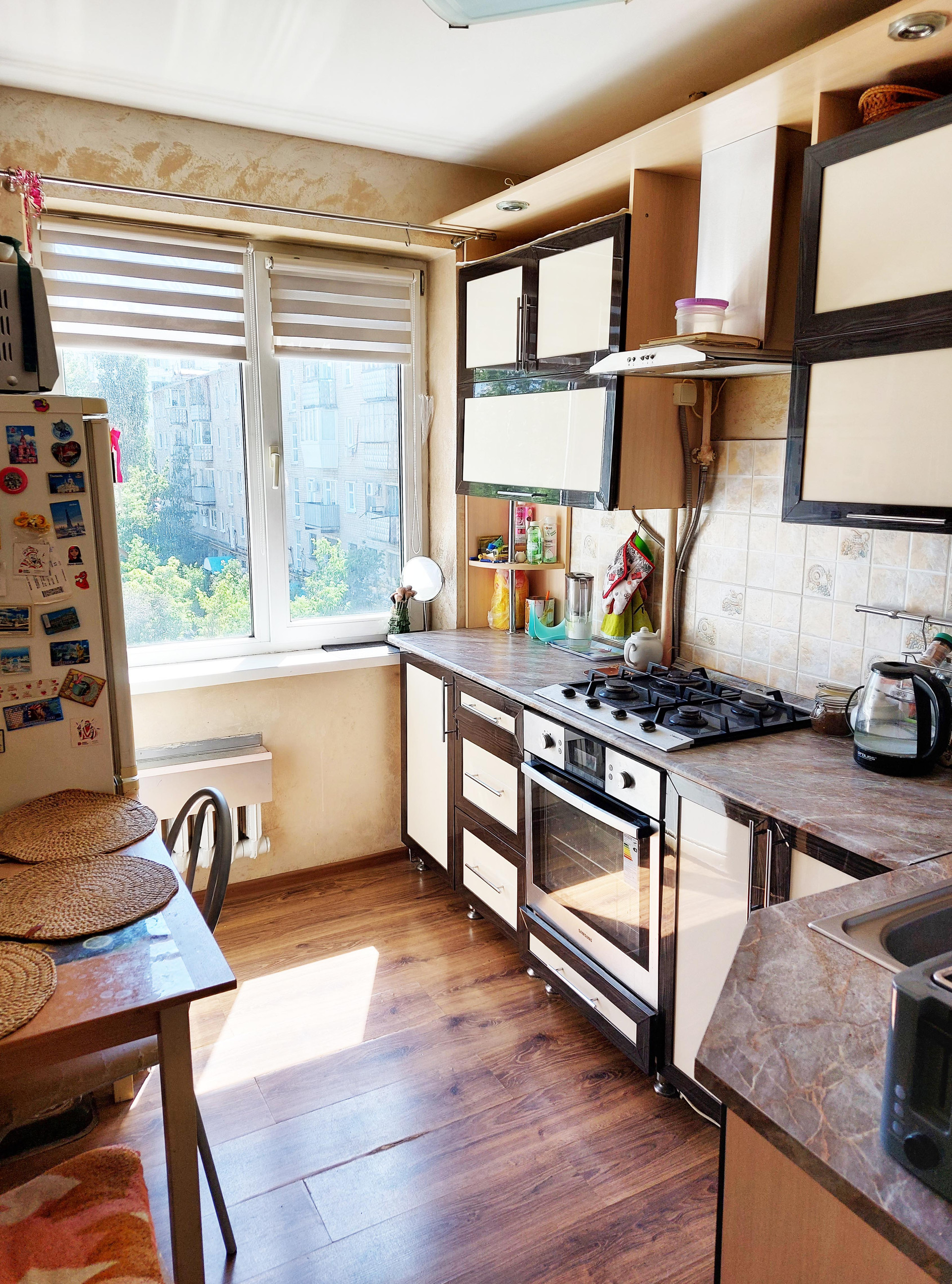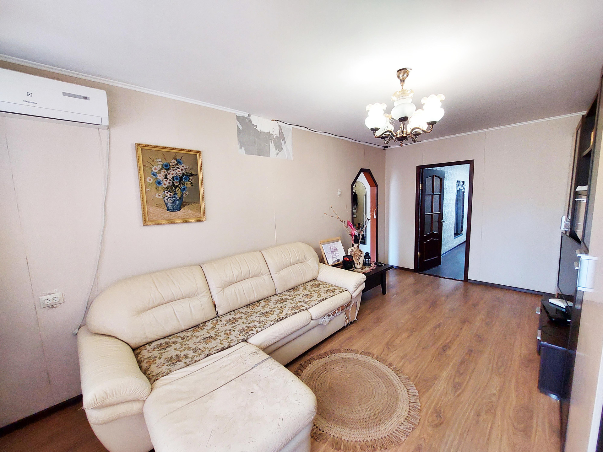 Квартира в хорошем состоянии. Несколько лет назад делался капитальный ремонт - стены, потолки выровнены, заменена проводка, санузел в кафеле. На кухне установлена автоматическая газовая колонка (у вас всегда будет горячая вода). Балкон остеклен. Чистый подъезд, хорошие соседи.