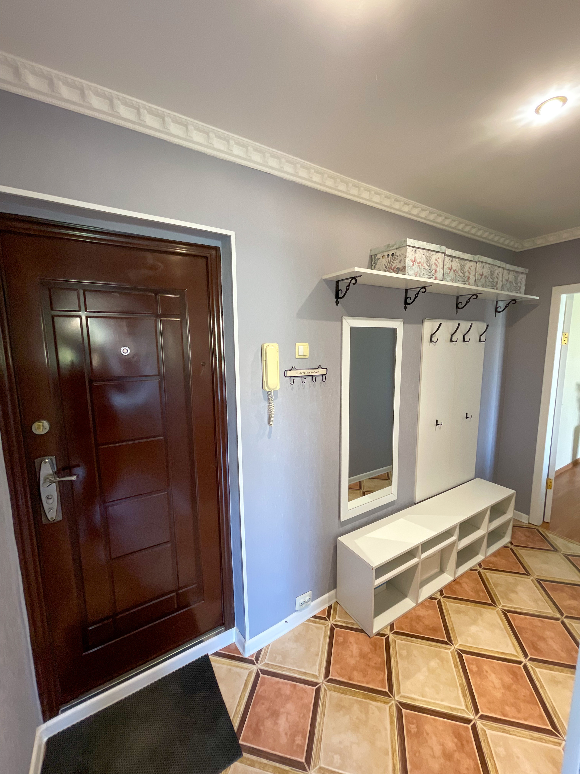 В квартире остаётся кухонный гарнитур с варочной поверхностью и вытяжкой, стенка в комнате, прихожая, сплит-система.