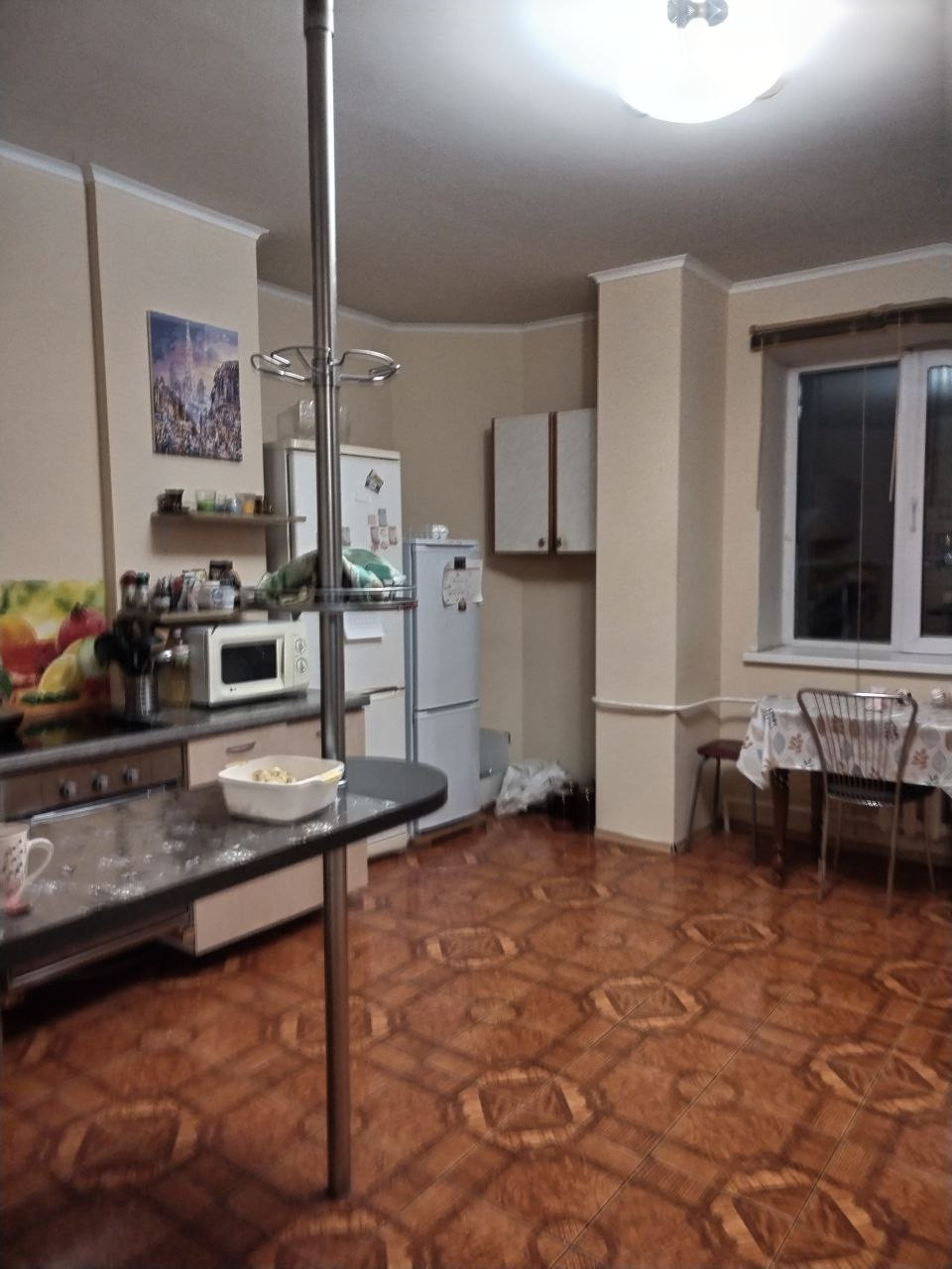Кухня-зал совмещенный  20 кв/м. На полу ламинат и линолеум. Сантехника вся в отличном состоянии.