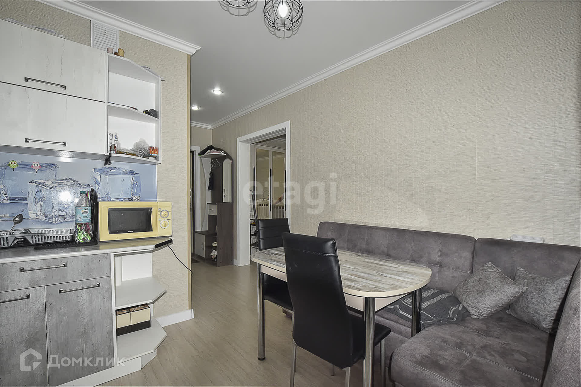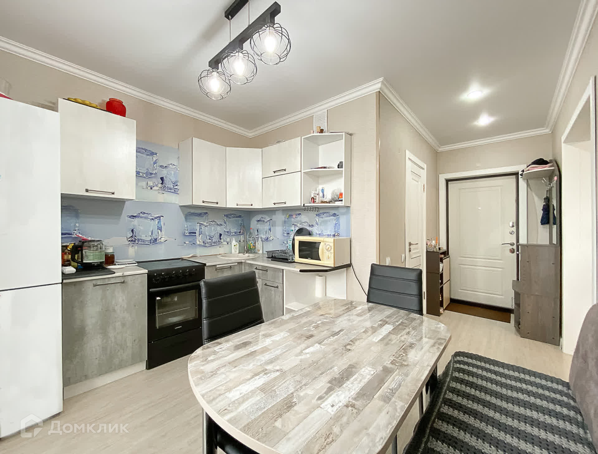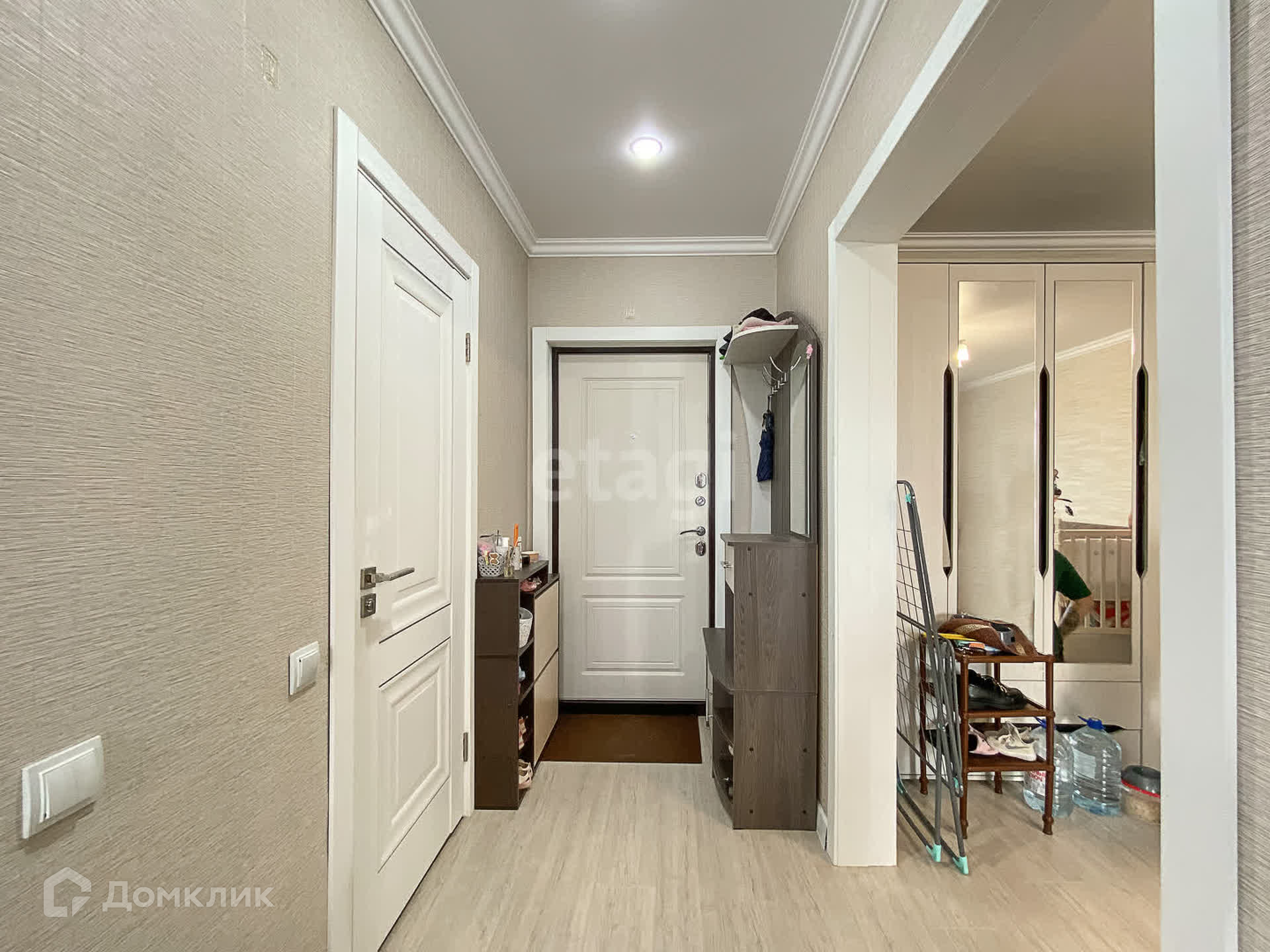 Будущим покупателям оставляют кухонный гарнитур, электрическую плиту, обувницу, шкаф-купе.