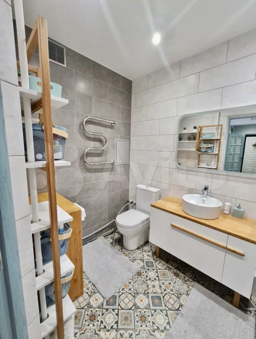 Выполнен отличный, не коммерческий ремонт, с использованием качественных импортных материалов , привезенных под спецзаказ. Идеально выровнен пол и стены, заменена полностью электрика, установлены новые стеклопакеты, теплый пол на лоджии и в ванной.