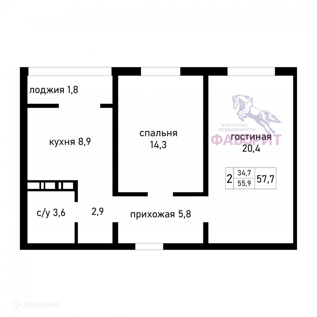 Общая площадь 57.5 м2