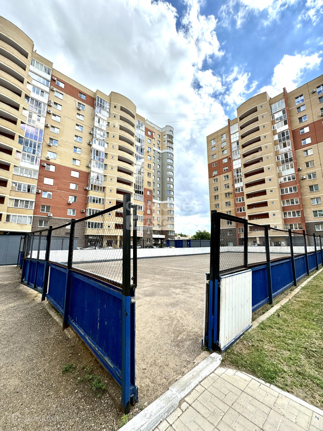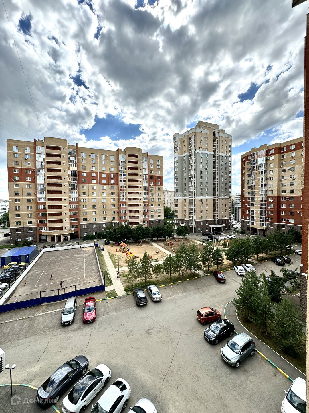 во дворе большая детская площадка и футбольная/хоккейная площадка.