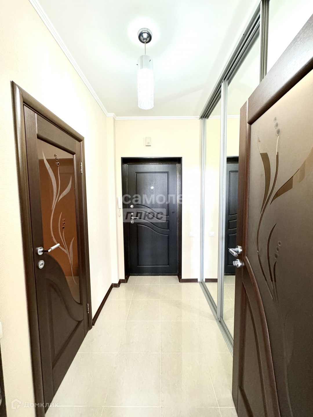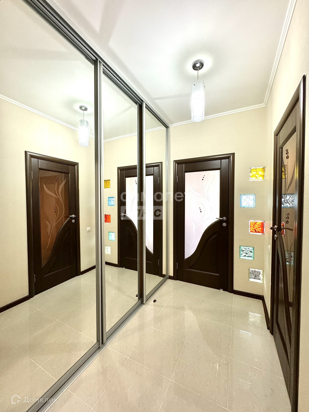 В прихожей оборудован вместительный встроенный шкаф-купе с большим зеркалом.