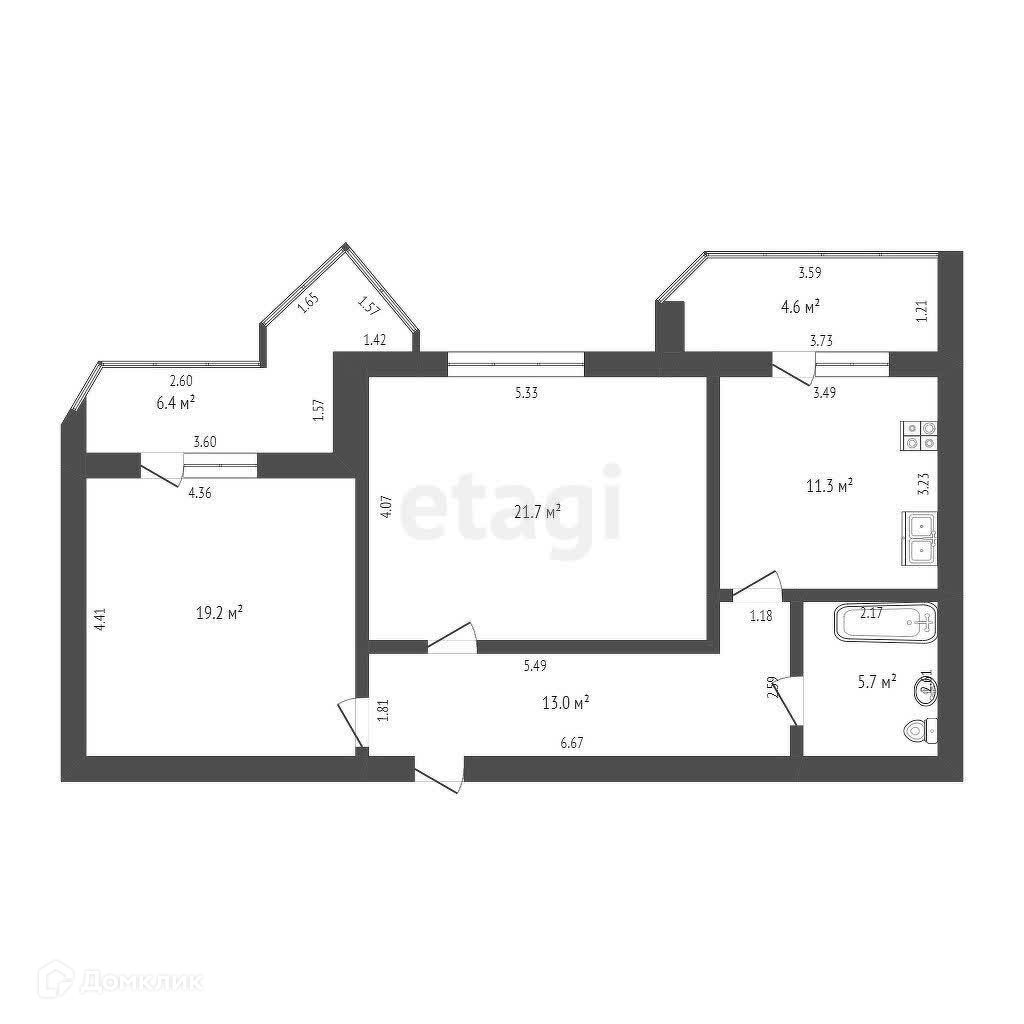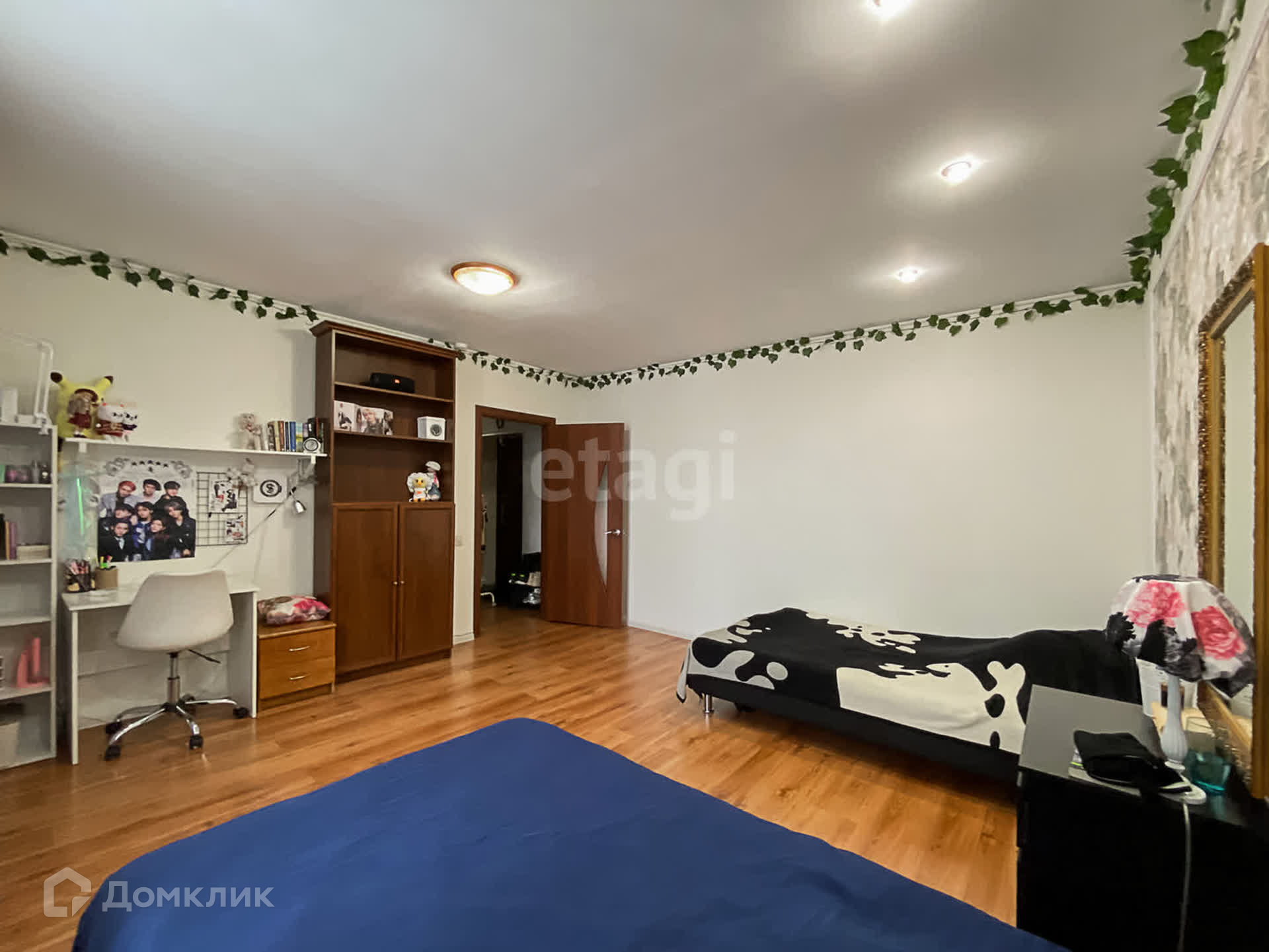 Имеются ДВА полноценных балкона (из кухни и из спальни). С/у совмещённый с подогревом полов.