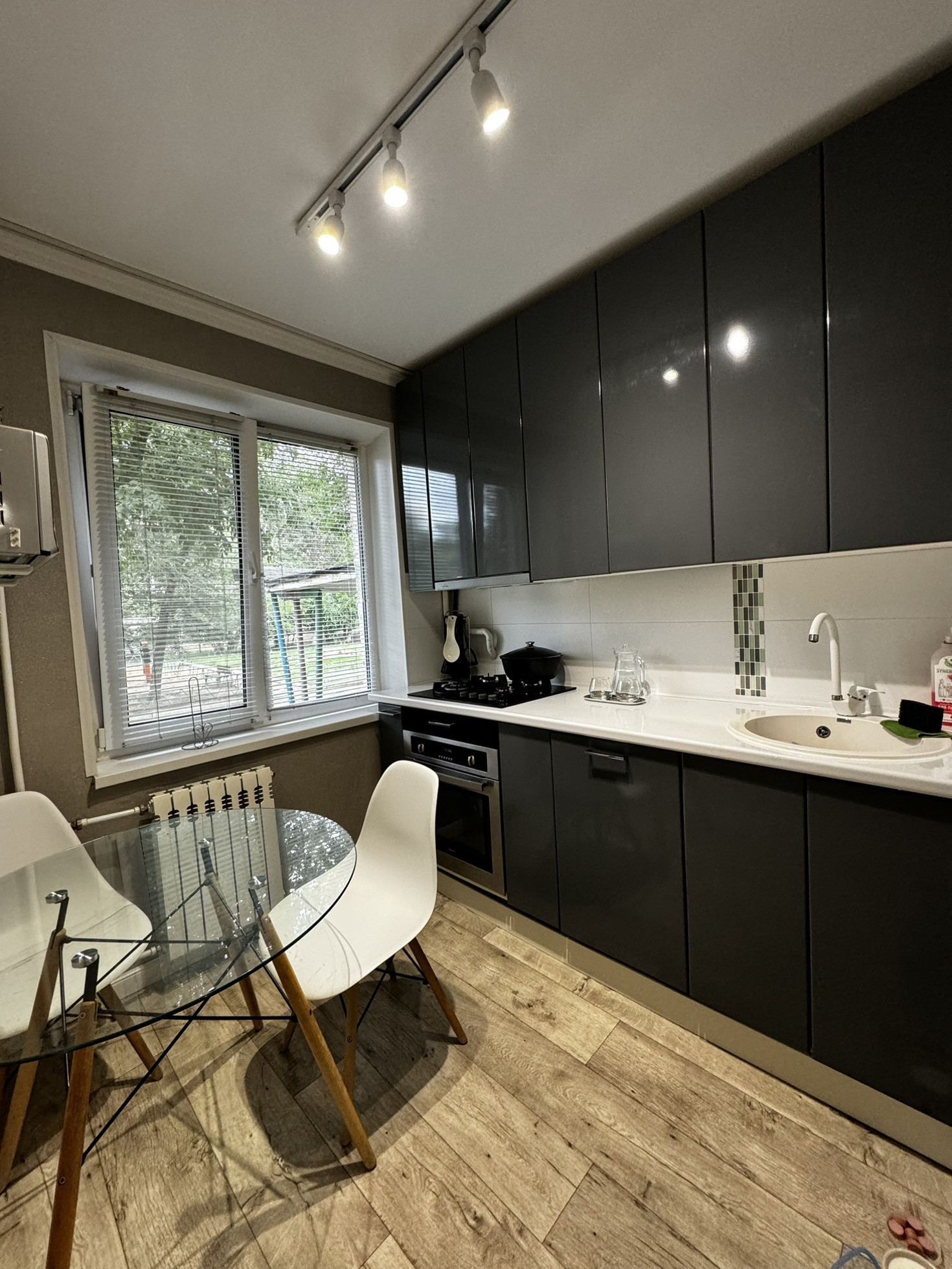 В квартире остается кухонный гарнитур с техникой,обеденный стол со стульями, остается наполнение в гардеробной, вся мебель в гостинной, тюль на окнах и освещение, сплит система.