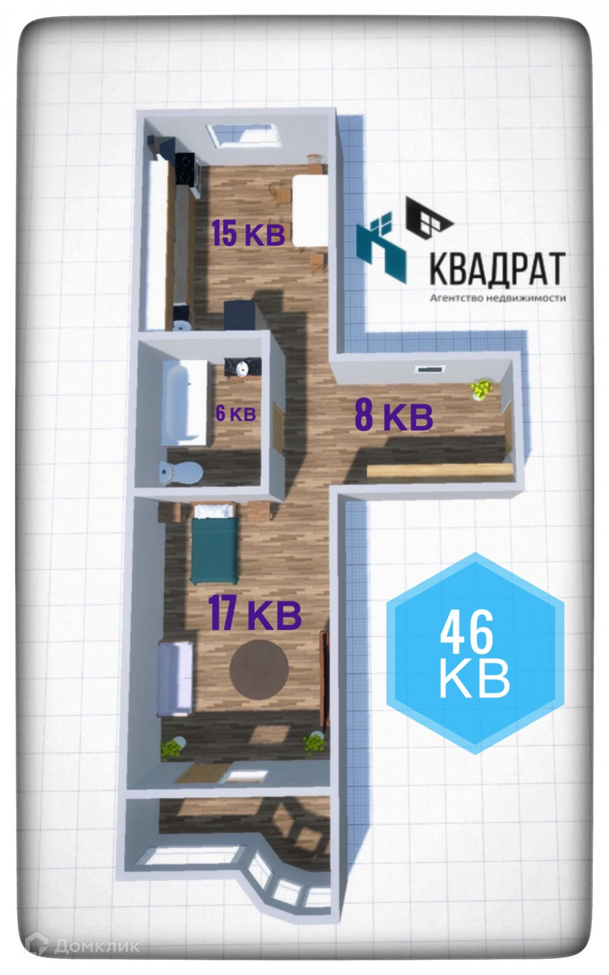 Общая площадь 46.3 м2