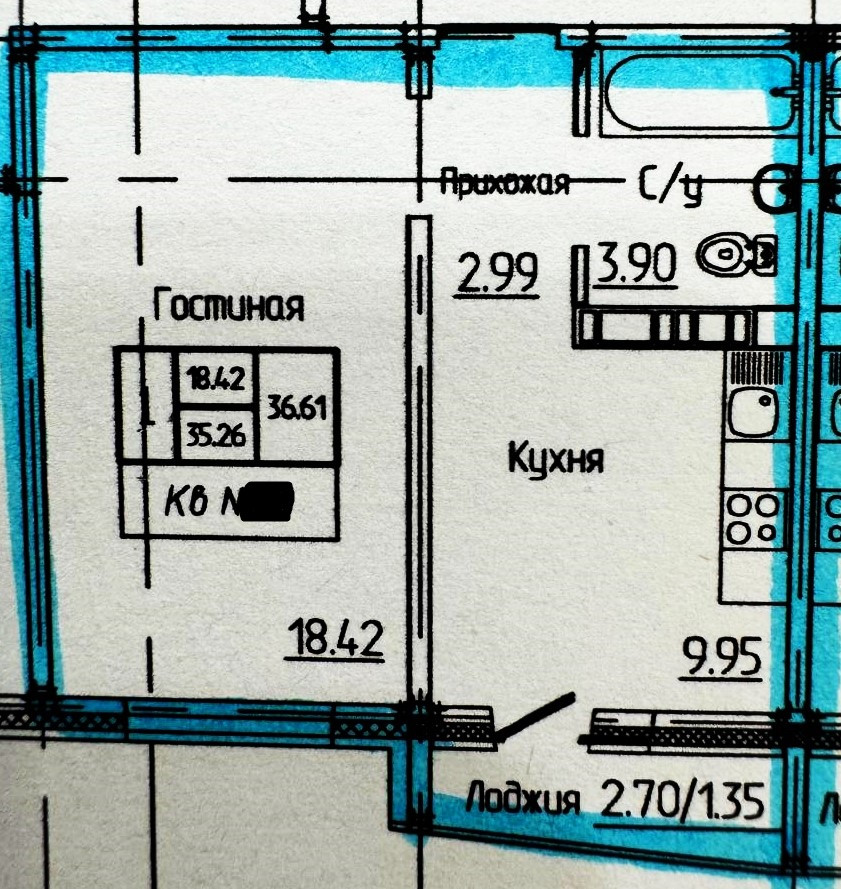 Общая площадь 36.6 м2