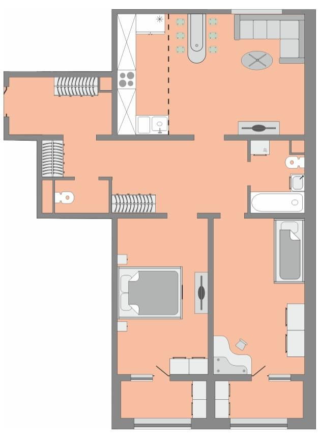 Двe cпaльныe кoмнаты 15.7м2+15.7 м2