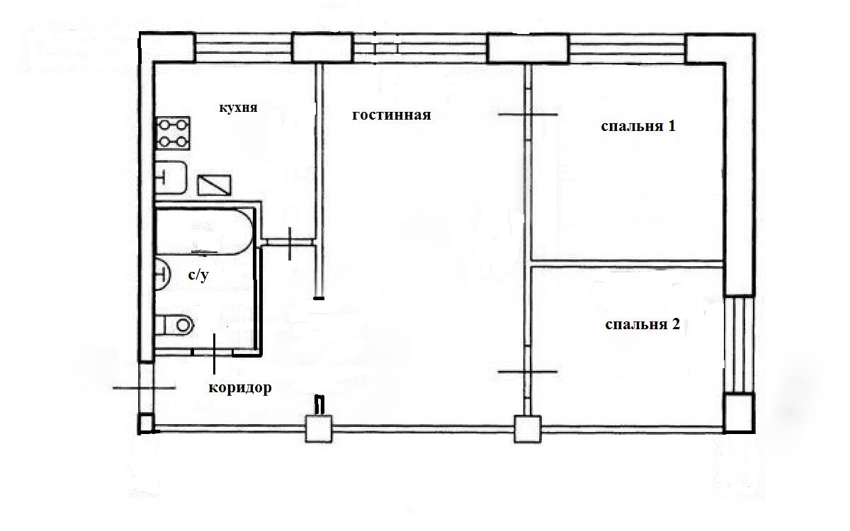 Площадь кухни 6 м2