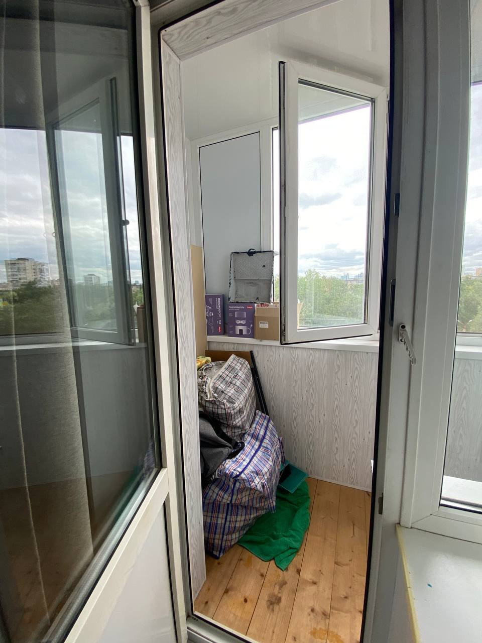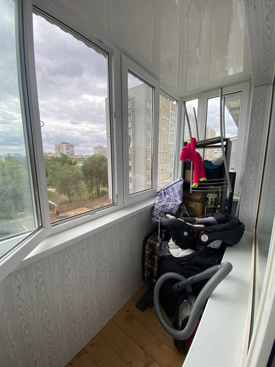 Имеется сплит система, балкон недавно застеклен, полы на балконе деревянные.