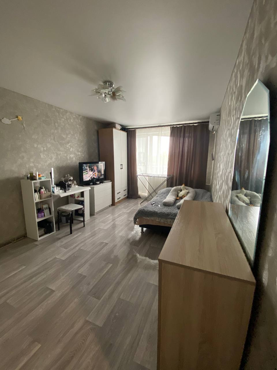 Натяжные потолки, свежий ремонт в комнате и в кухне, в ванной ремонта нет.
