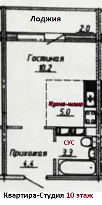 Жилая площадь 10.2 м2