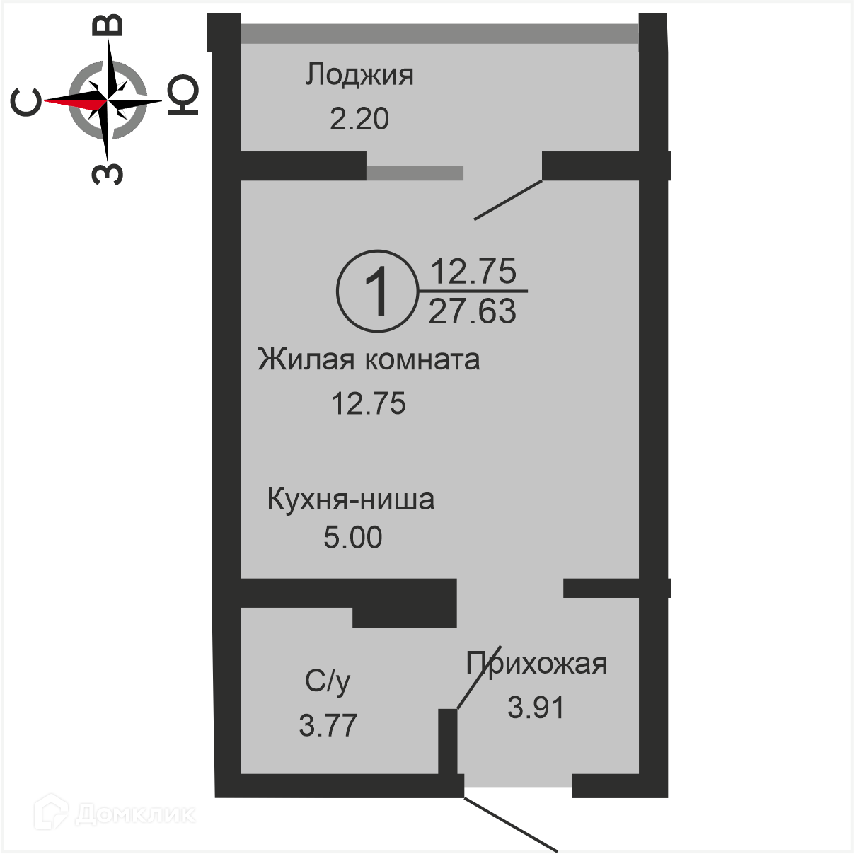 Общая площадь 26.3 м2