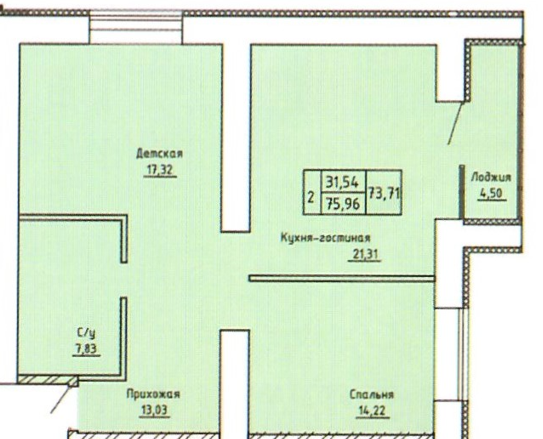 Общая площадь 76.49 м2