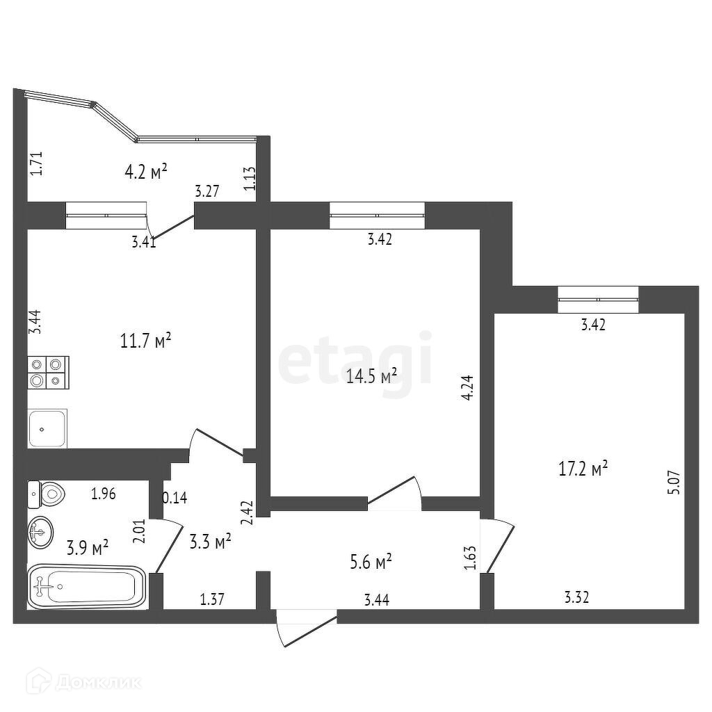 Общая площадь 56.1 м2