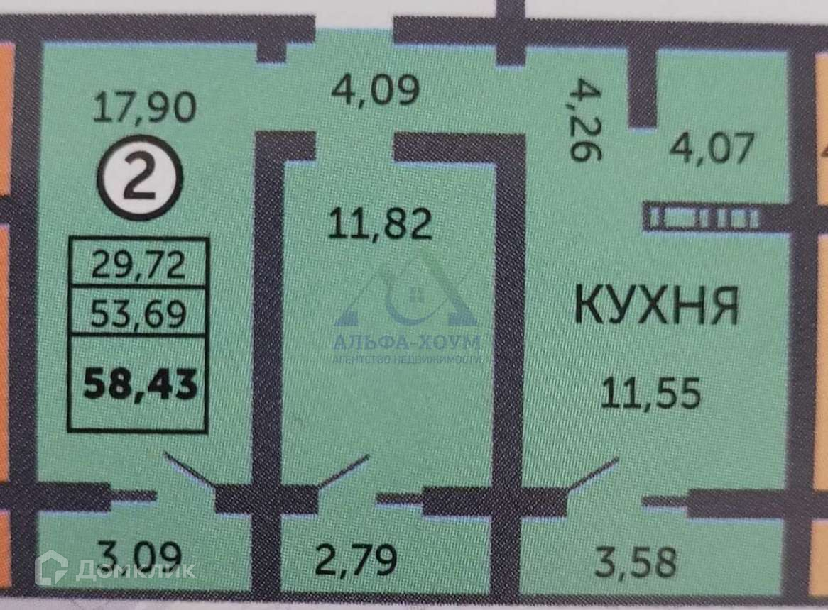Общая площадь 58.43 м2
