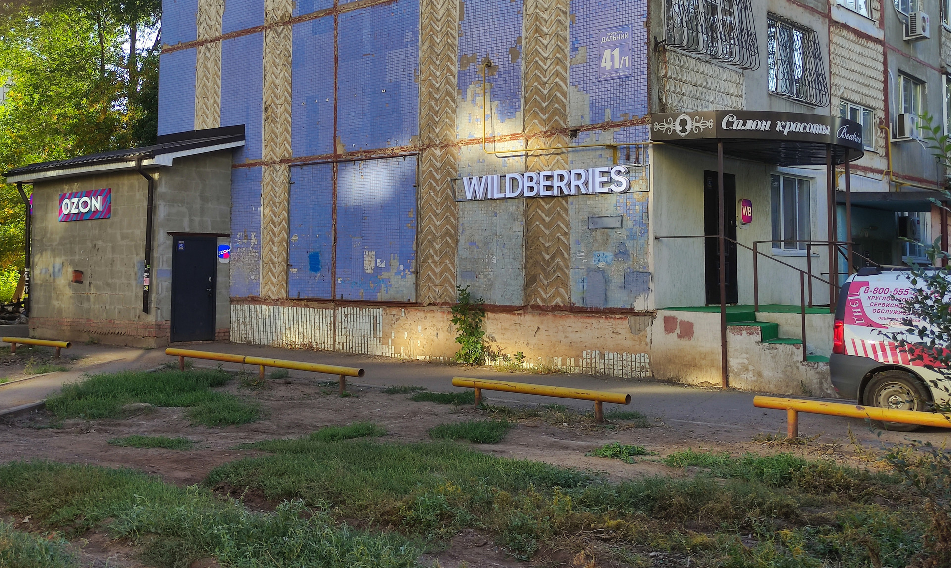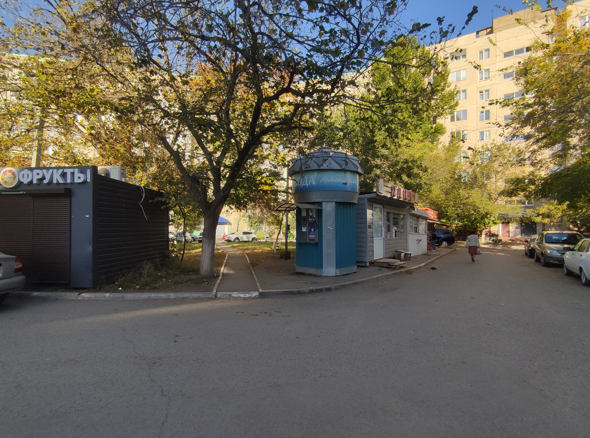 Во дворе дома расположены всевозможные продуктовые киоски, хлебная лавка, артезианская вода, аптеки, пункты выдачи Ozon и Wilberris, салон красоты.