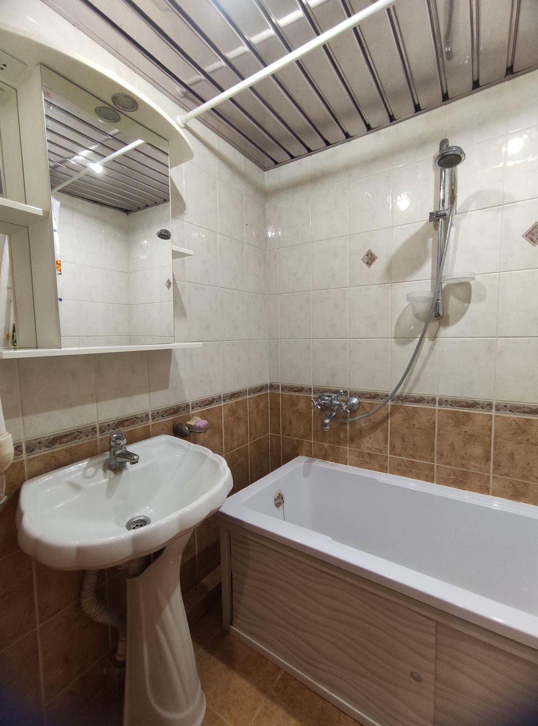 Квартира в хорошем состоянии, на полу ламинат, кафель, установлен пластиковый стеклопакет. Новым собственникам в подарок остается кухонный гарнитур и плита, кондиционер, кровать, вместительный шкаф-купе, что позволяет переехать в квартиру сразу после покупки.