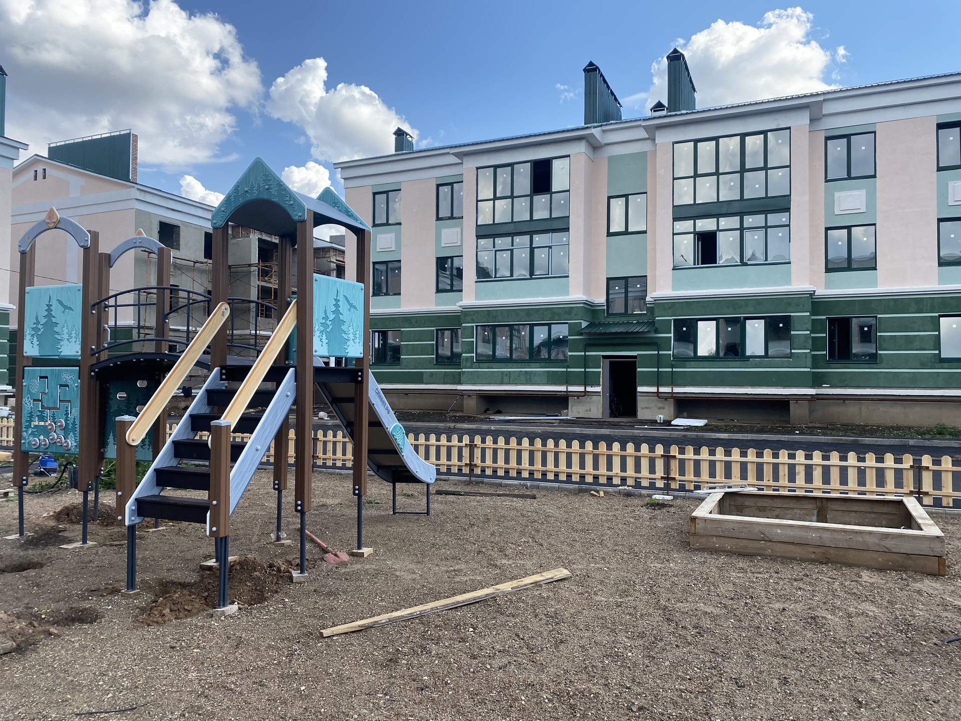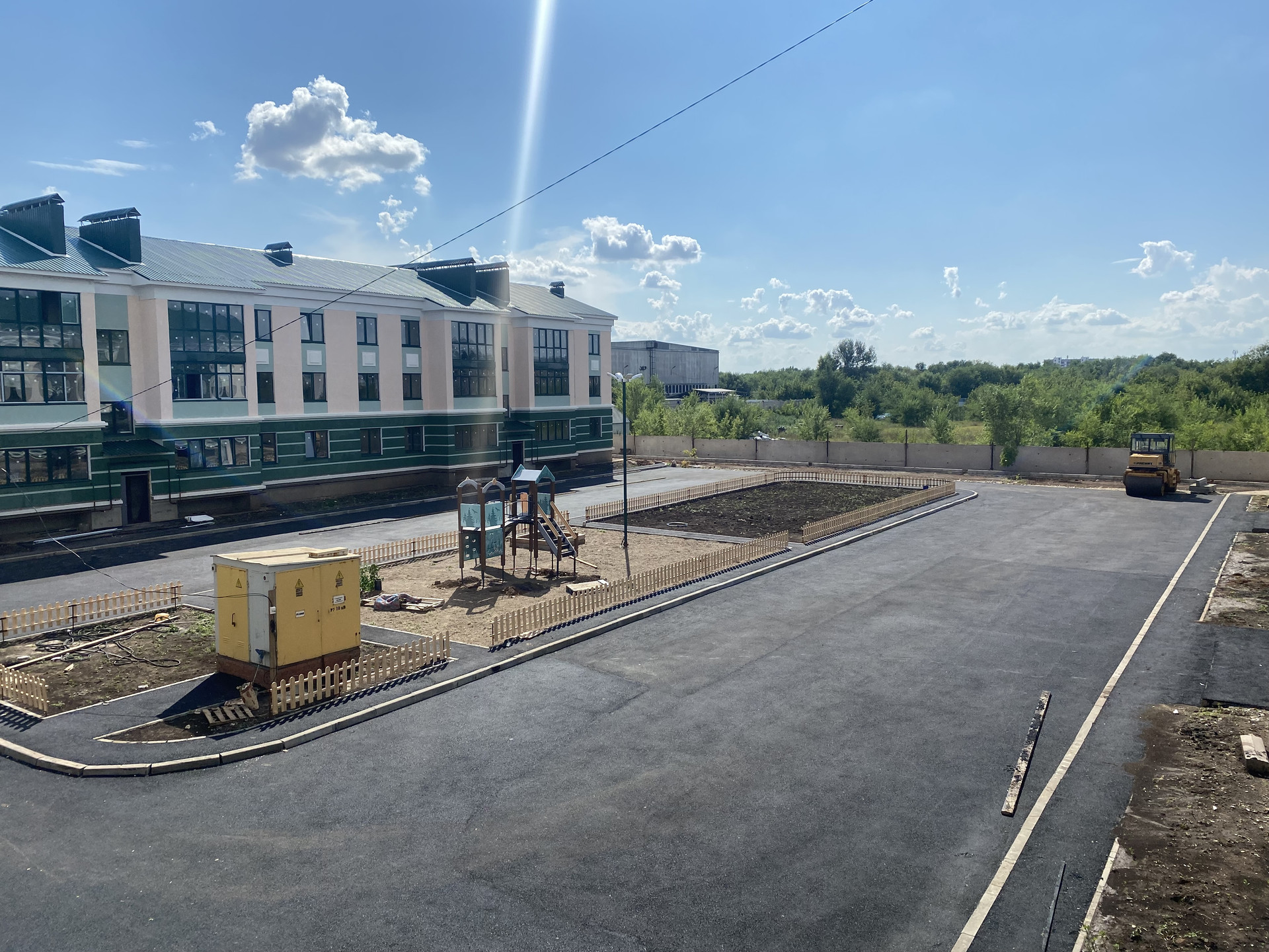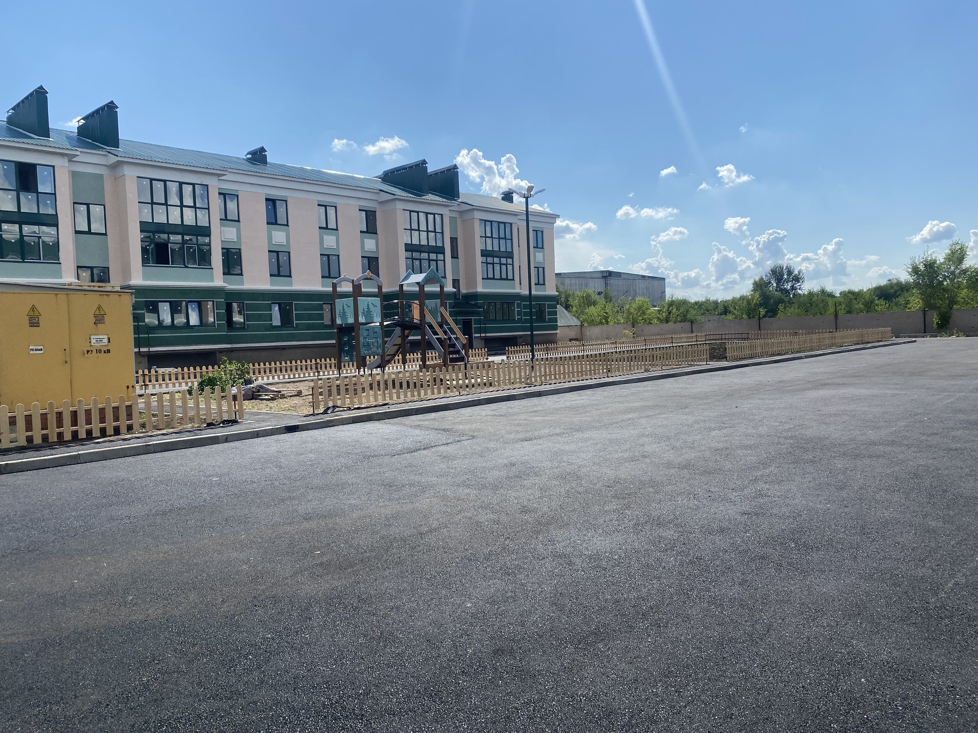 - асфальтированный проезд с выделенными местами для парковок автомобилей, площадка детских и спортивных игр, зоны общего отдыха.