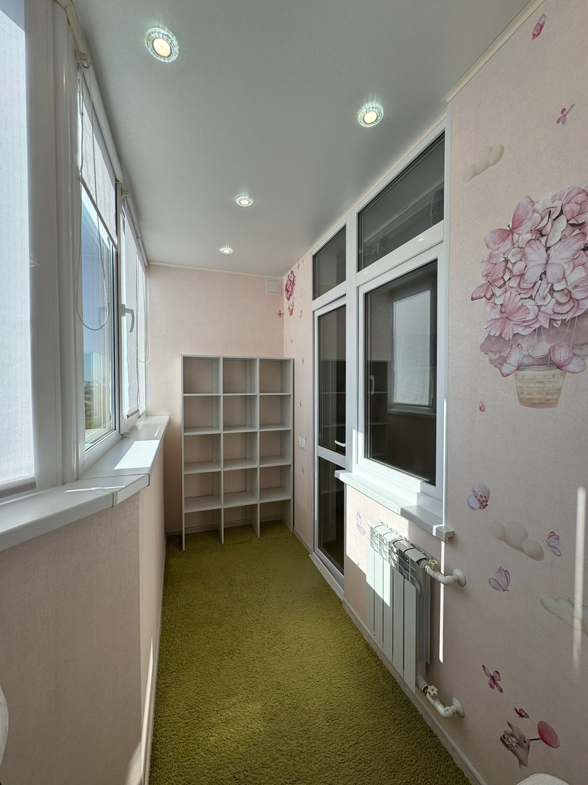 • уютный, утеплённый балкон оснащён корпусной мебелью