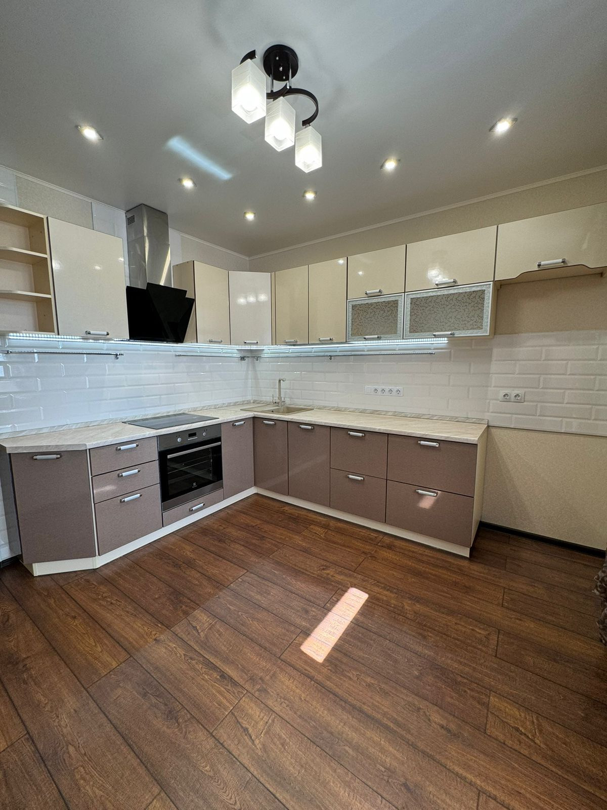 • шикарная кухня со встроенной бытовой техникой (индукционная варочная поверхность Electrolux, духовой шкаф Electrolux, посудомоечная машина Bosch с управлением через wi-fi, вытяжка Cata, гарнитур оснащён светодиодной подсветкой рабочей зоны, дополнительным фильтром питьевой воды